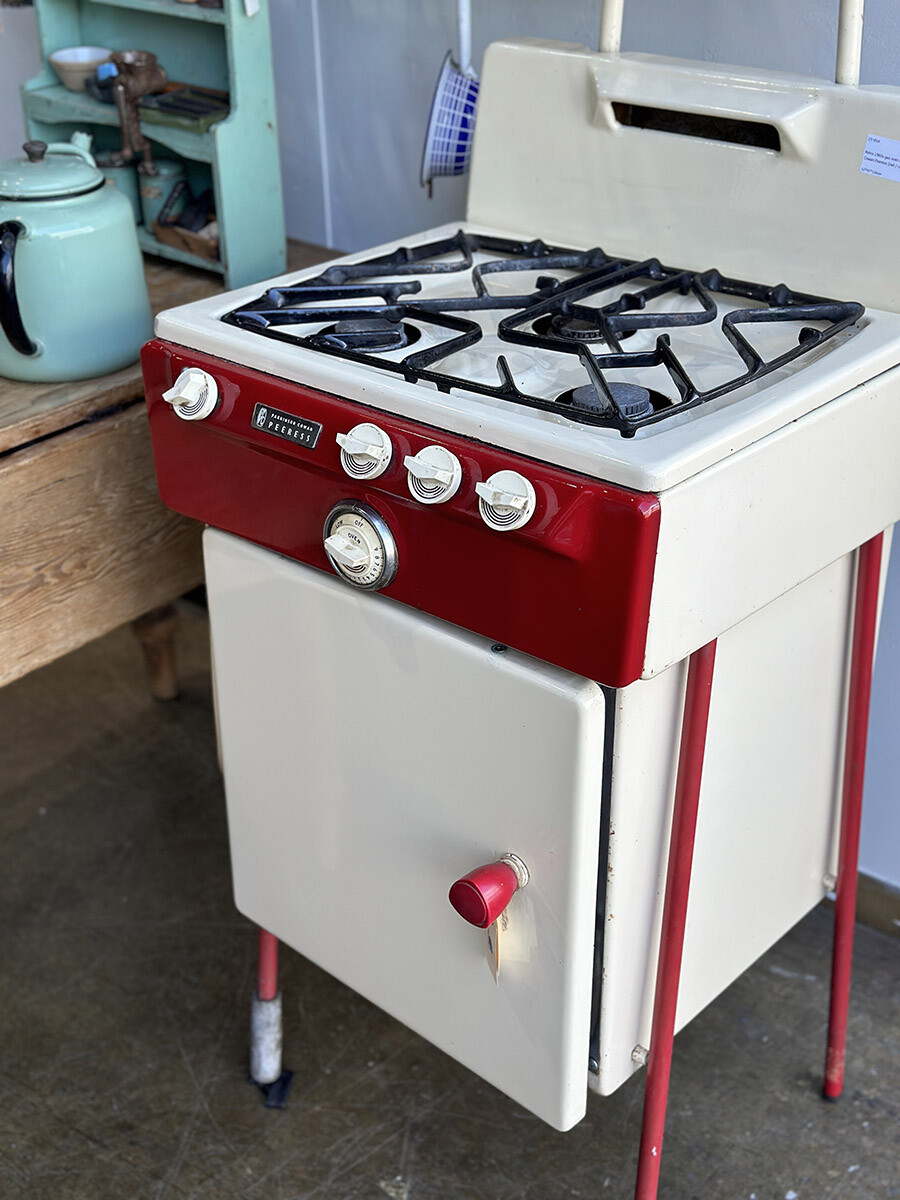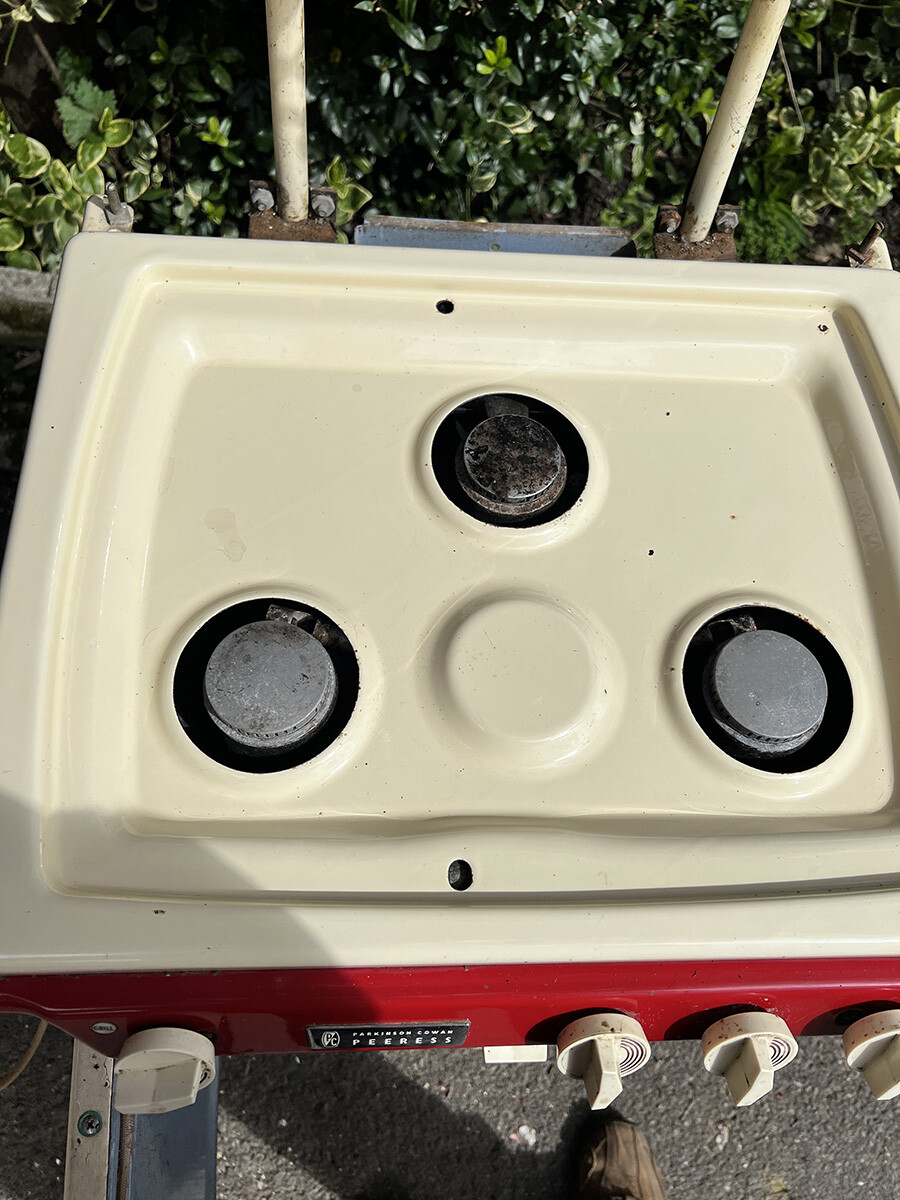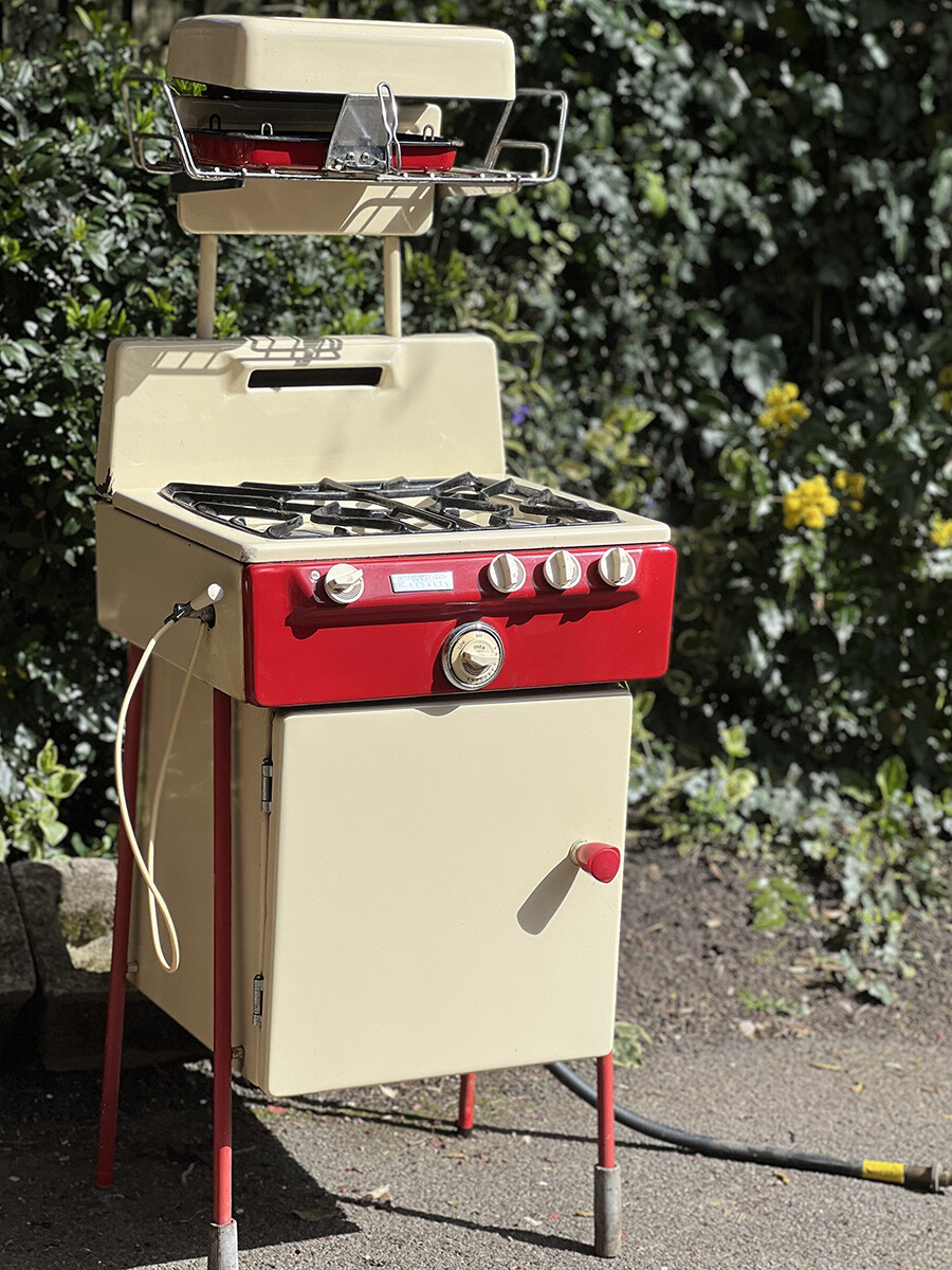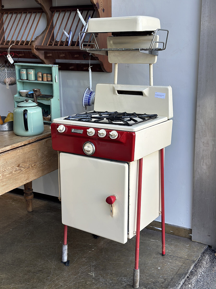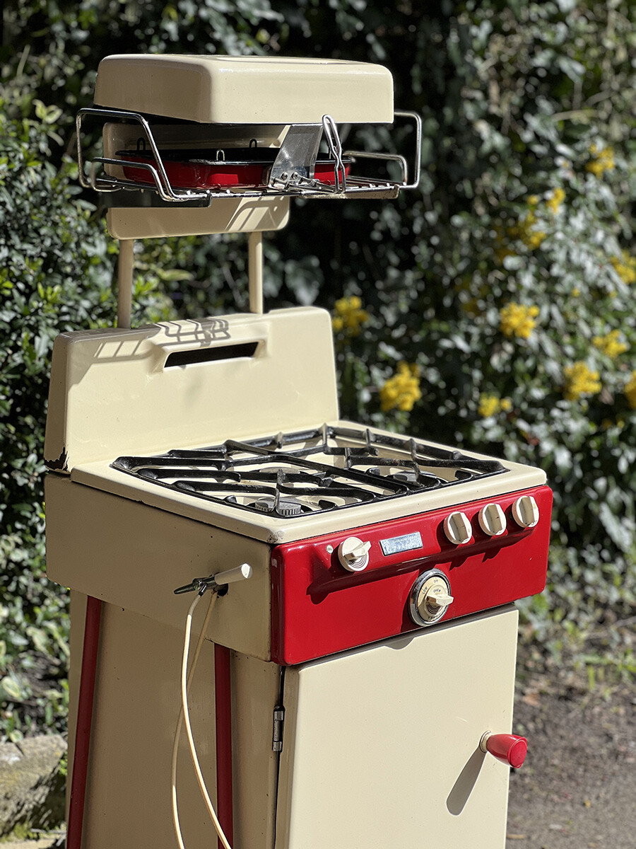 1960년대의 레트로 감성이 풍부한 피어리스(PEERESS) 가스 오븐 쿠커입니다. 파킨슨 코완 피어리스 주식회사는 1900년 영국에서 시작된 프리미엄급 가스 오븐 메이커로, 1970년 이후 일렉트로룩스 계열로 합병되면서 긴 역사를 마감했지만, 빈티지 마니아들에게 사랑 받는 브랜드로 남아있습니다. 해당 모델은 1950~1960년대에 보급되었던 모델입니다. 최상단에는 그릴, 중간부에 레인지 쿡탑, 하부 캐비넷처럼 보이는 부분은 오븐입니다.