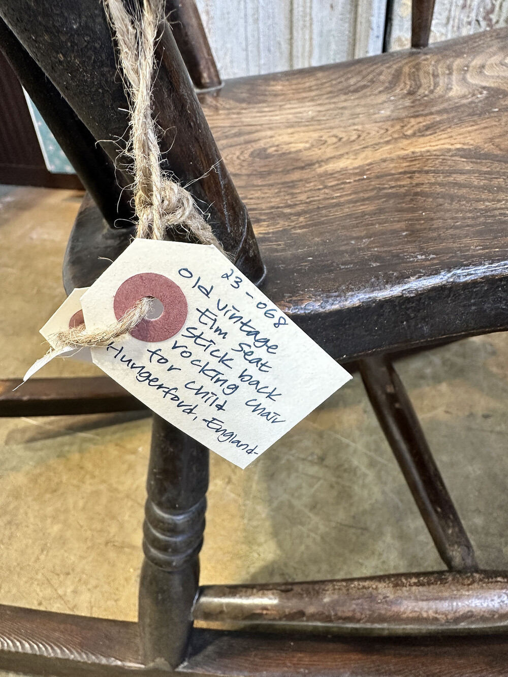23-068 올드 빈티지 엘름 시트 스틱 백 차일드 록킹 체어