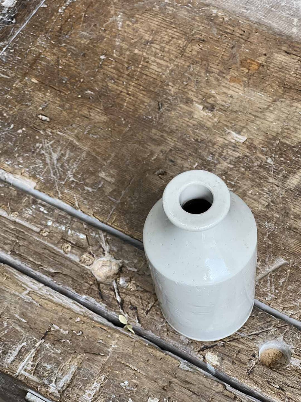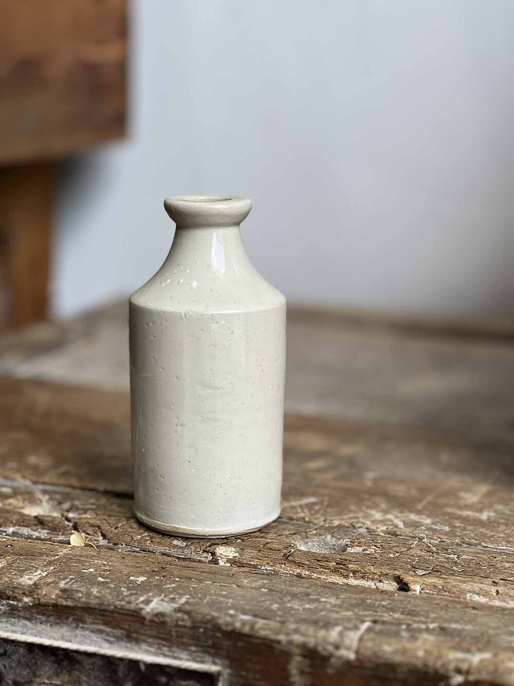 스톤웨어 재질로 만들어진 앤틱 스몰 보틀입니다. 스톤웨어(stoneware)란 여러 가지 점토를 혼합해 고온에서 구워낸 불투명한 자기로, 유약을 전면에 바른 것부터 일부만 사용한 것, 아예 유약을 사용하지 않은 것까지 다양한 형태가 존재합니다.