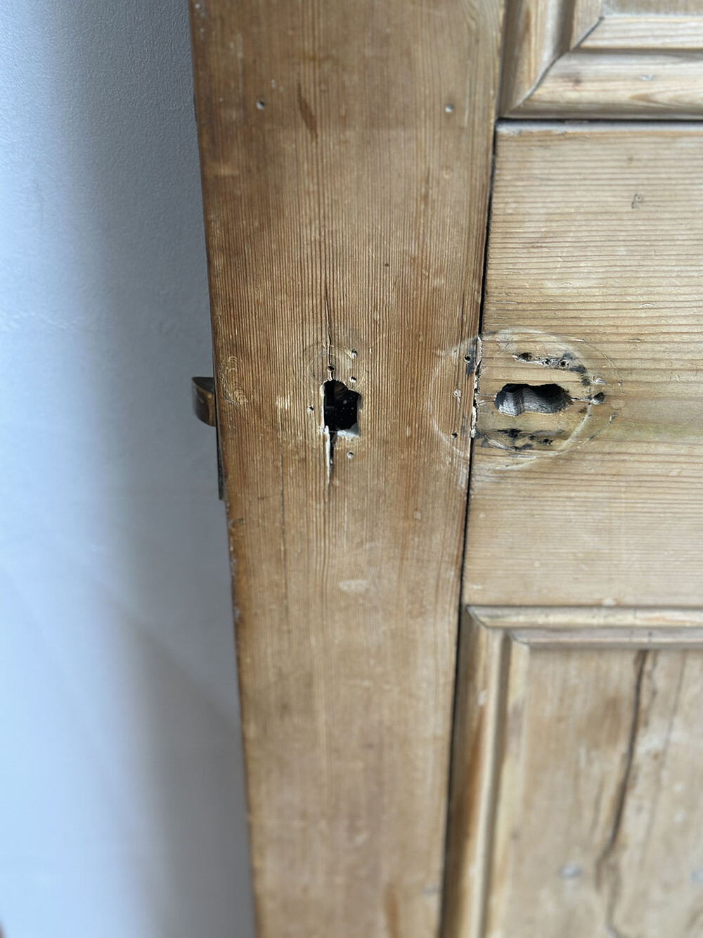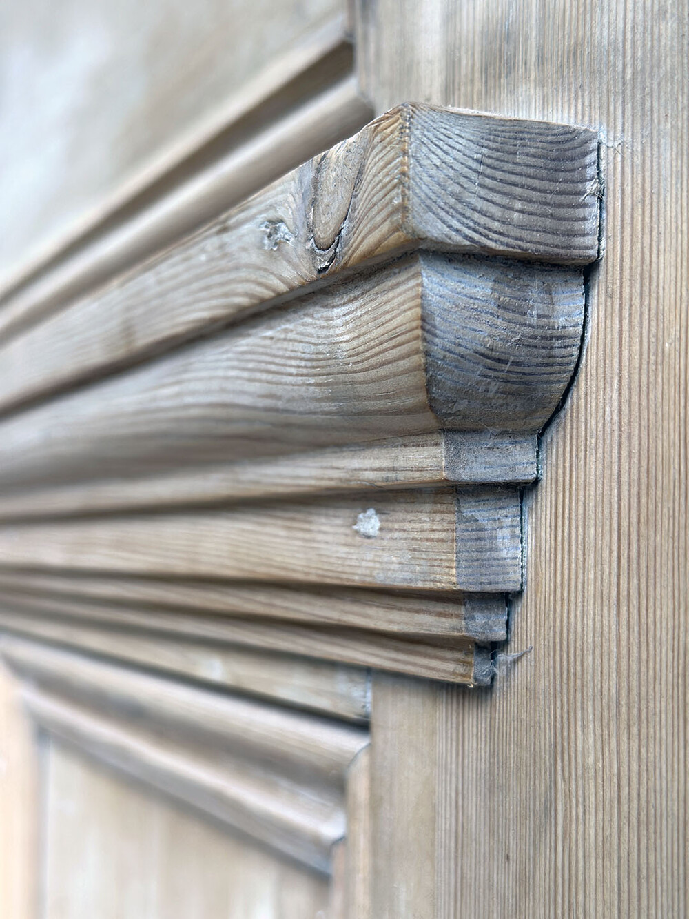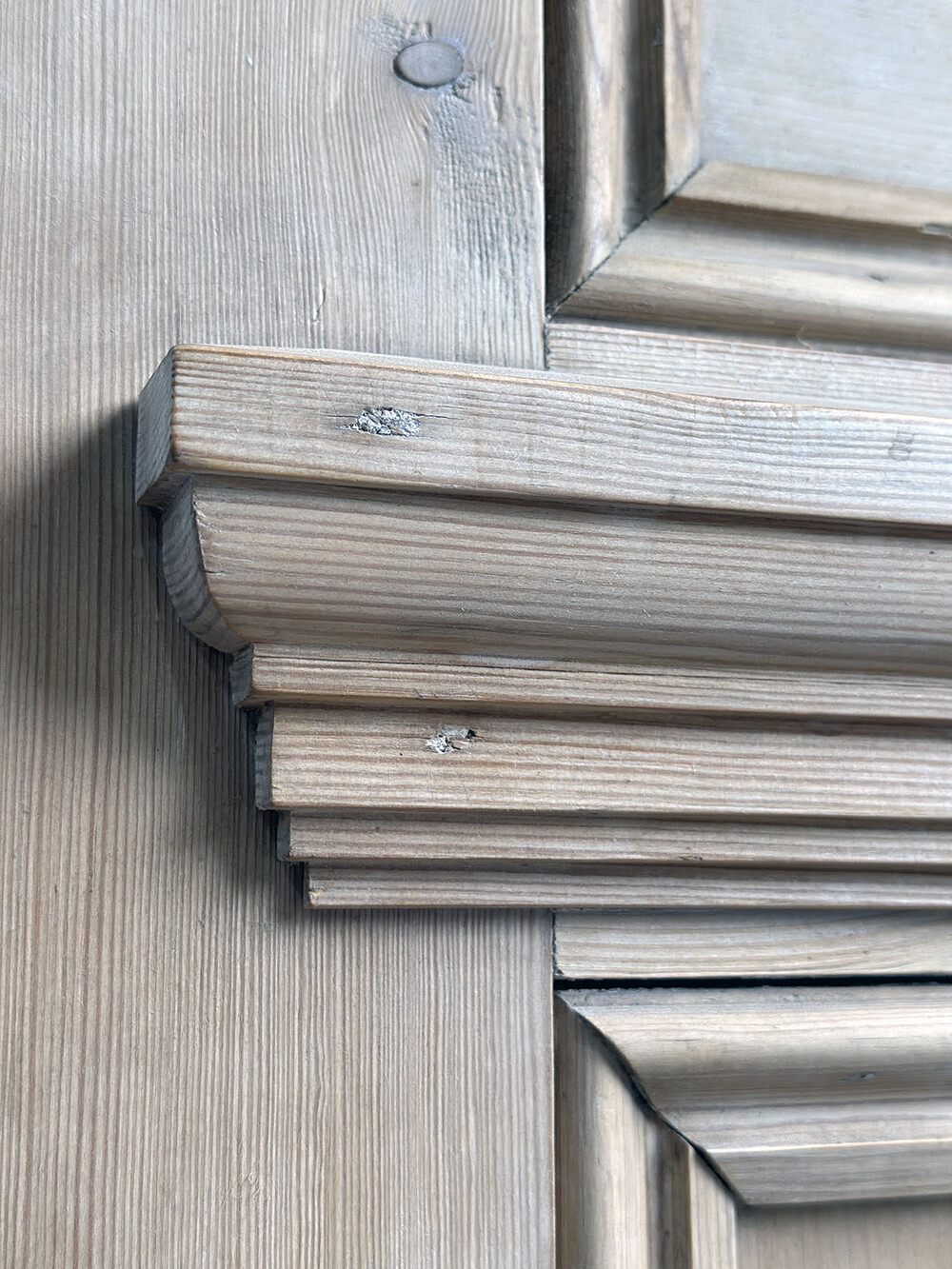 이 문은 파인(pine) 원목으로 제작된 앤틱 인터널 도어로, 전형적인 19세기 영국식 디자인으로 당시 주택의 실내 공간을 단정하면서도 품격 있게 완성해 주던 양식입니다. 오랜 세월을 거치며 자연스레 드러난 파인의 따뜻한 결과 마모의 흔적은 이 문만이 가진 고유의 표정이 되어, 공간에 빈티지한 온기를 더합니다.
