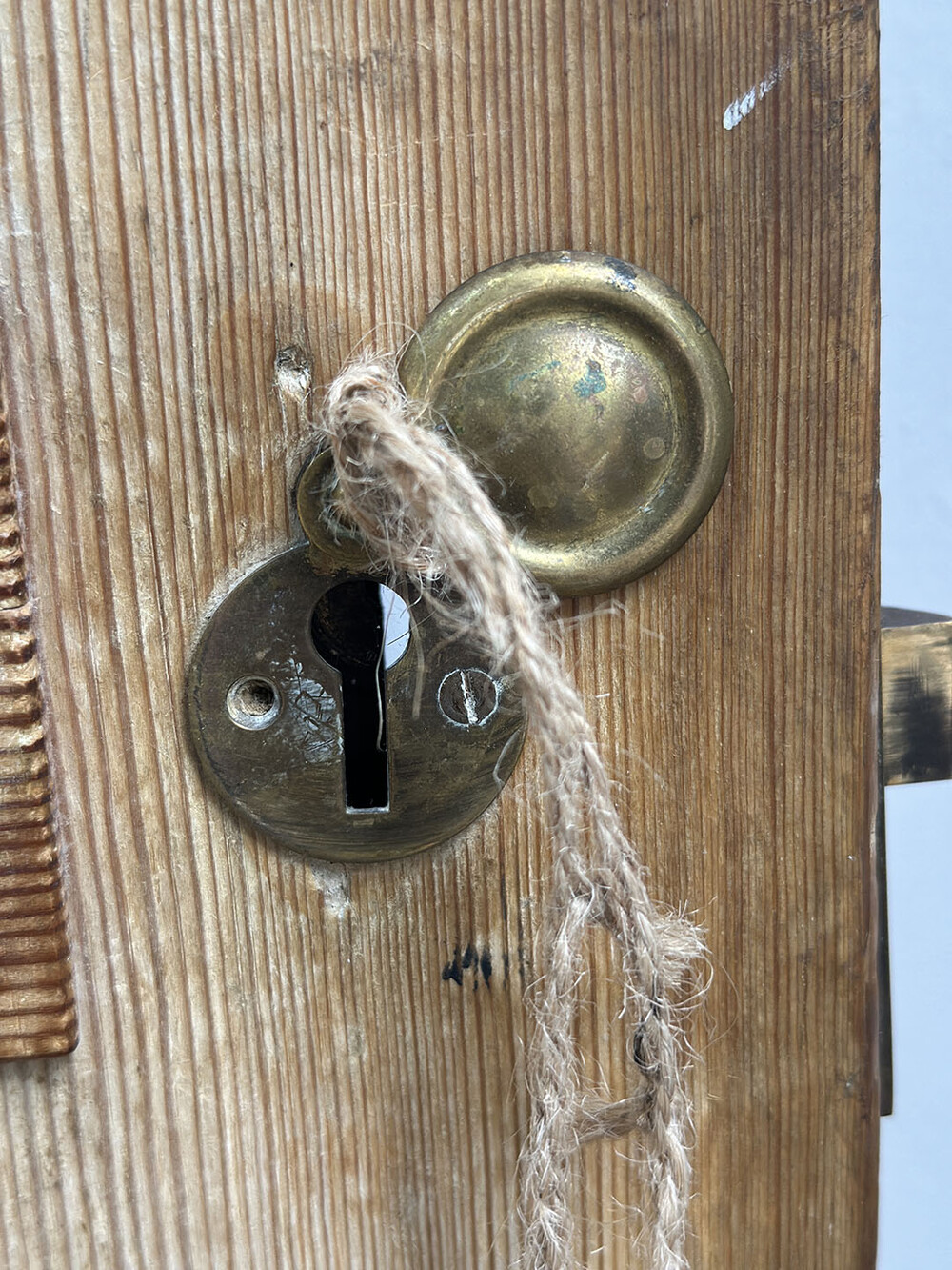 A. 있는 경우도 있지만, 없는 경우가 더 많습니다. 도어가 사용된 기간이 길다 보니, 이전 사용자들이 각기 다른 잠금장치를 달아 놓은 경우도 있어 잠금장치가 여러 개 달려 있는 도어도 있습니다. 열쇠나 하드웨어의 유무, 연대, 희소성 등은 도어의 가치와 가격에 반영됩니다. 잠금장치는 새로 설치하여 사용하는 경우가 일반적입니다.