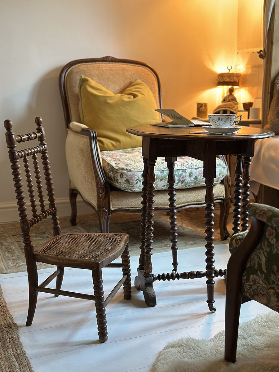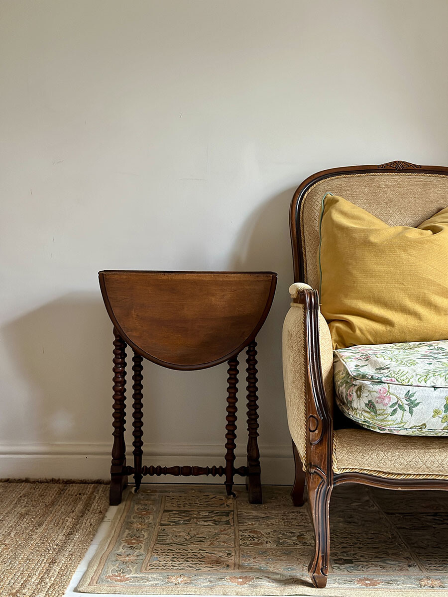 이 '앤틱 오벌 보빈 레그 드랍리프 테이블'은 다리 부분이 실을 감을 때 사용하는 보빈의 형태를 갖고 있어서 '보빈 레그(bobbin leg)'라고 하는데, 보통 우리가 꽈배기 모양이라고 하는 '발리 트위스트(barly twist)'에 비해서 흔치 않은 형태라 희소성이 높은 편입니다.