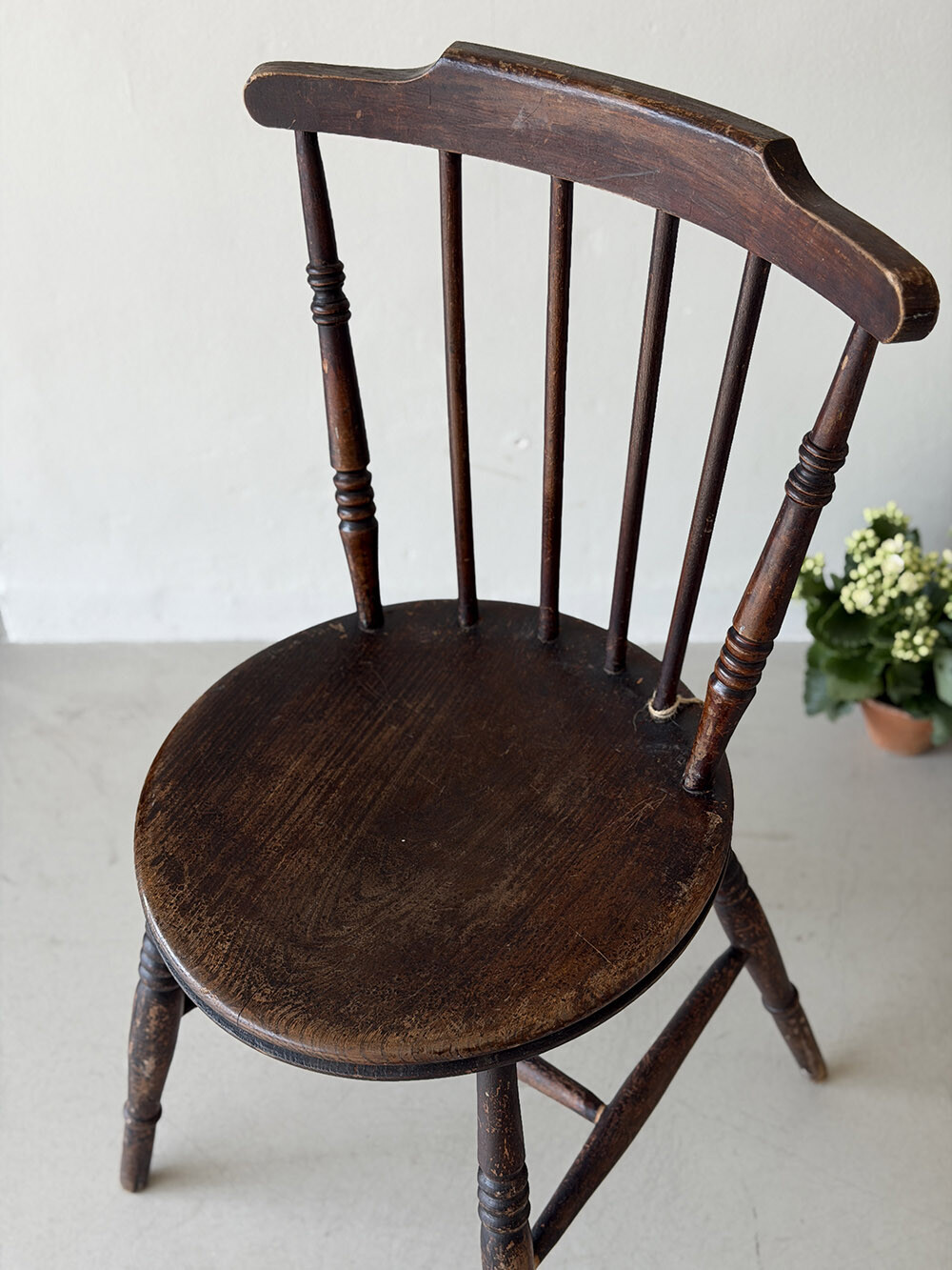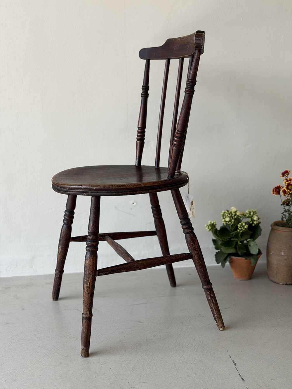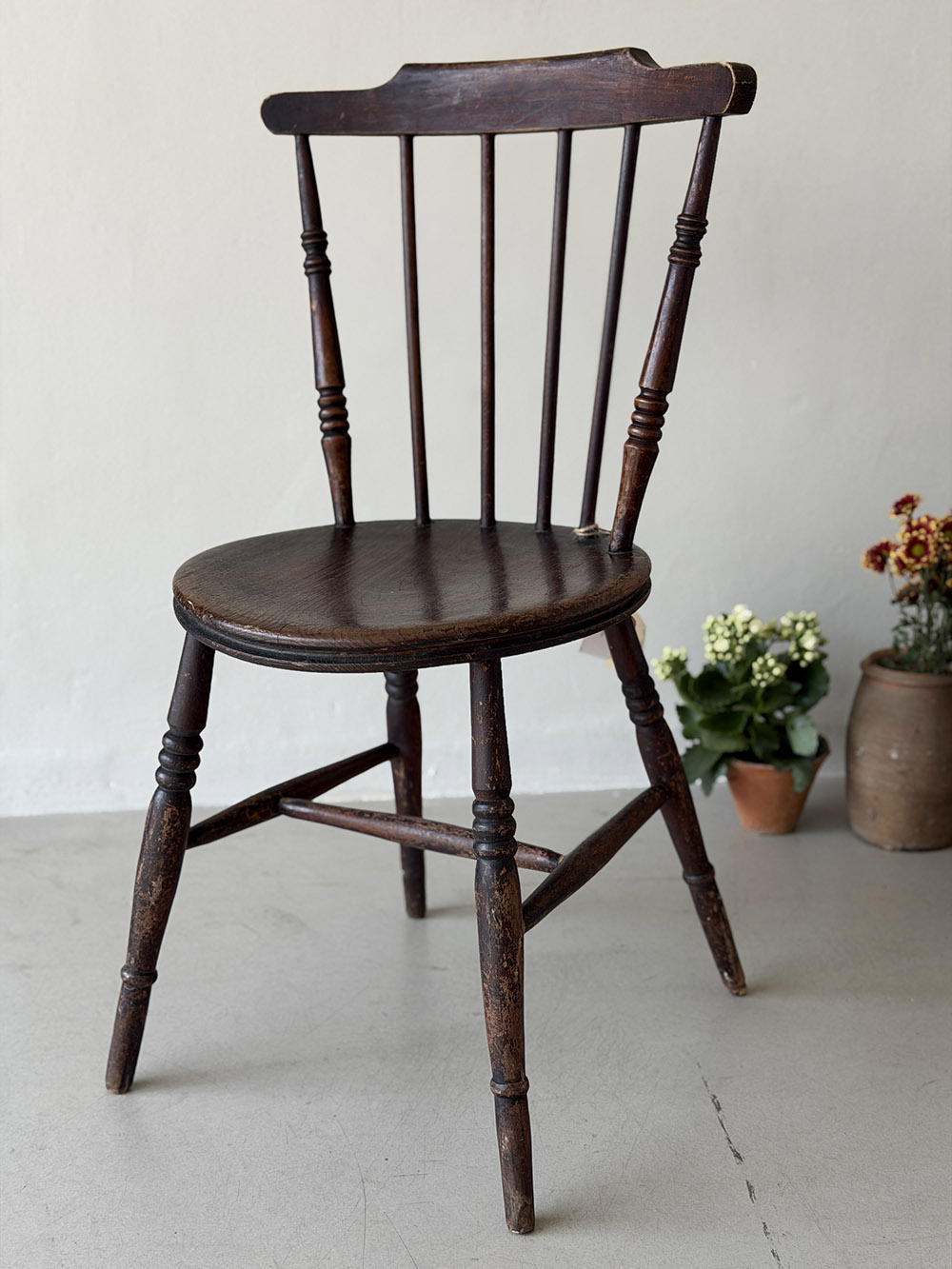 과장되지 않은 조형과 깊이 있는 목재의 색감, 그리고 세월이 남긴 자연스러운 사용 흔적이 어우러진 체어로, 잉글리쉬 컨트리 가구의 담백한 미감을 공간에 편안하게 더해 줄 수 있는 피스입니다.