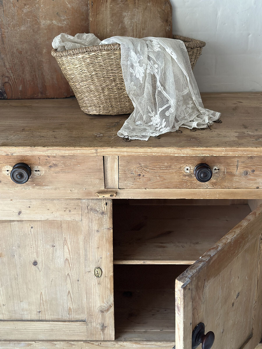 영국의 시골 주택에서 오랜 세월 동안 사랑받아온 올드 빈티지 파인 사이드보드입니다. 1940년대 이전에 제작된 이 가구는 시간이 지나면서 자연스럽게 스며든 아름다운 결이 그대로 살아 있는 파인 원목으로 만들어졌으며, 단순하면서도 따뜻한 디자인이 공간에 편안한 분위기를 더해줍니다.