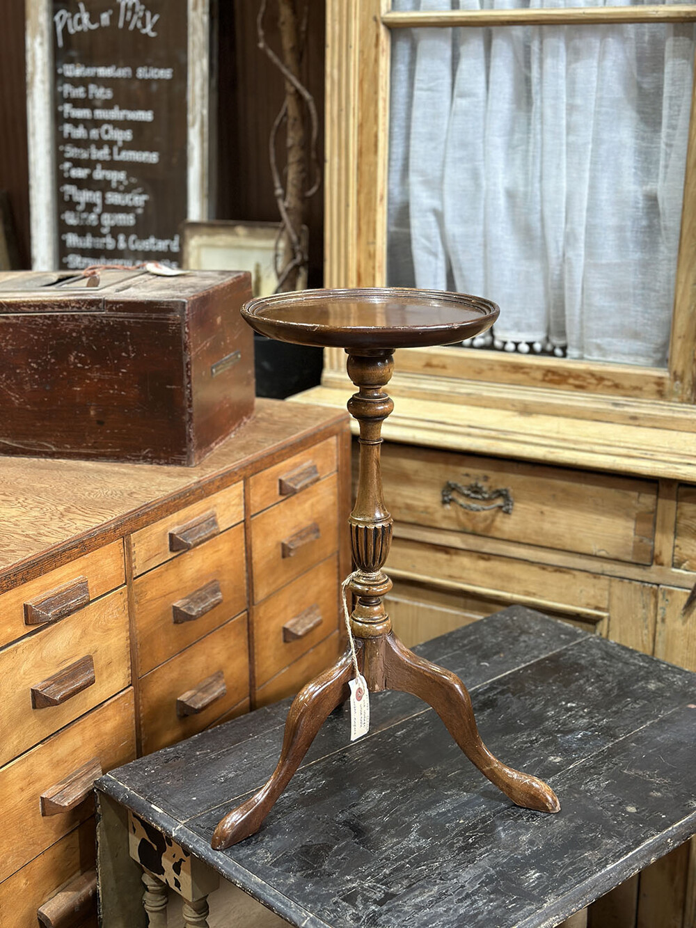 신고전주의적인 디자인 요소들이 가미되어 있는 올드 빈티지 와인 테이블입니다. 쇼파나 의자 옆에 두는 개인용 사이드 테이블이라고 할 수 있죠. 크기는 보통 와인 글래스나 위스키 텀블러 한 잔과 간단한 스낵 보울, 혹은 시가 한 대를 두기에 딱 좋은 크기로 만들어지곤 합니다.