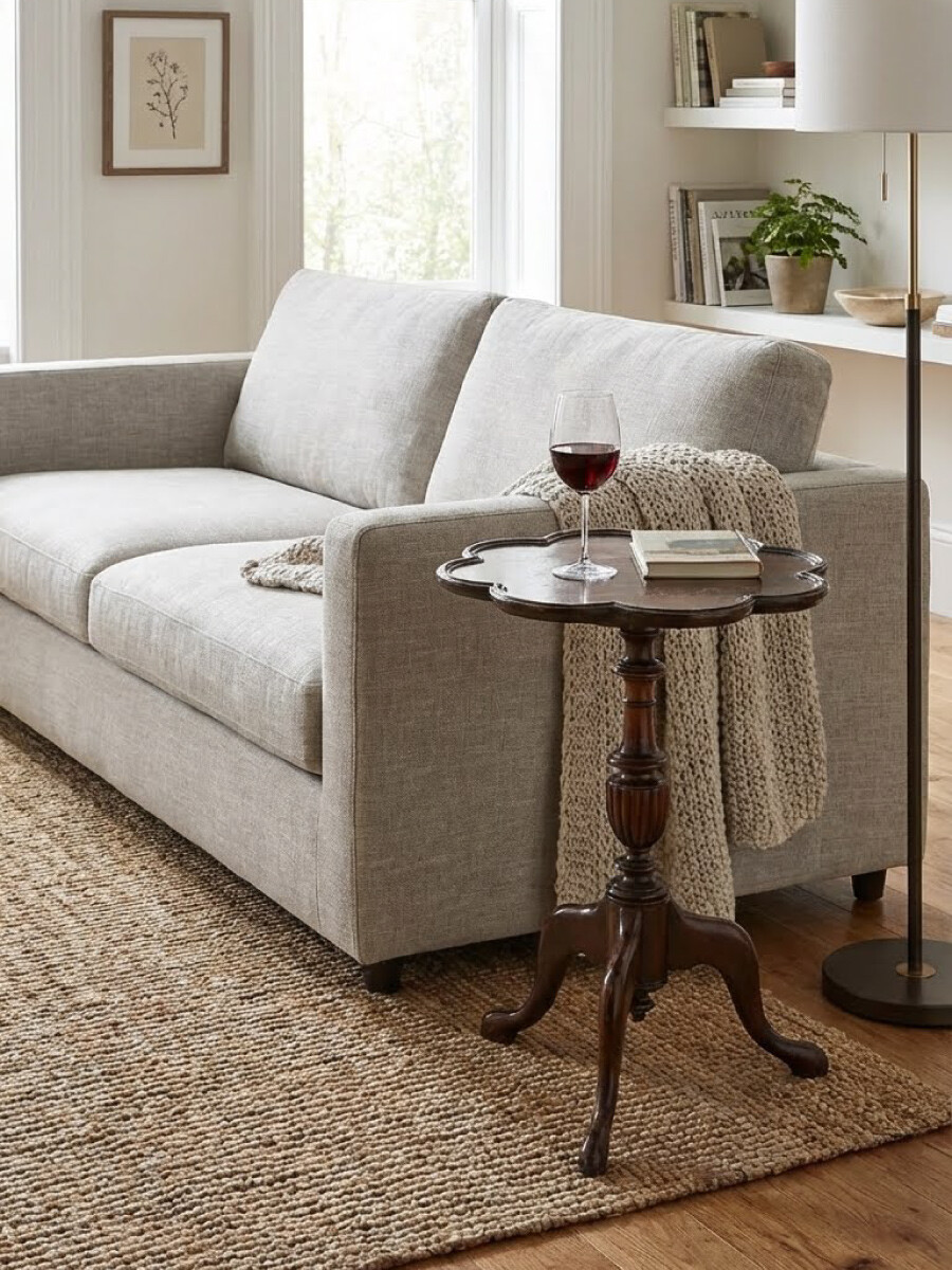 신고전주의적인 디자인 요소들이 가미되어 있는 올드 빈티지 와인 테이블입니다. 쇼파나 의자 옆에 두는 개인용 사이드 테이블이라고 할 수 있죠. 크기는 보통 와인 글래스나 위스키 텀블러 한 잔과 간단한 스낵 보울, 혹은 시가 한 대를 두기에 딱 좋은 크기로 만들어지곤 합니다.