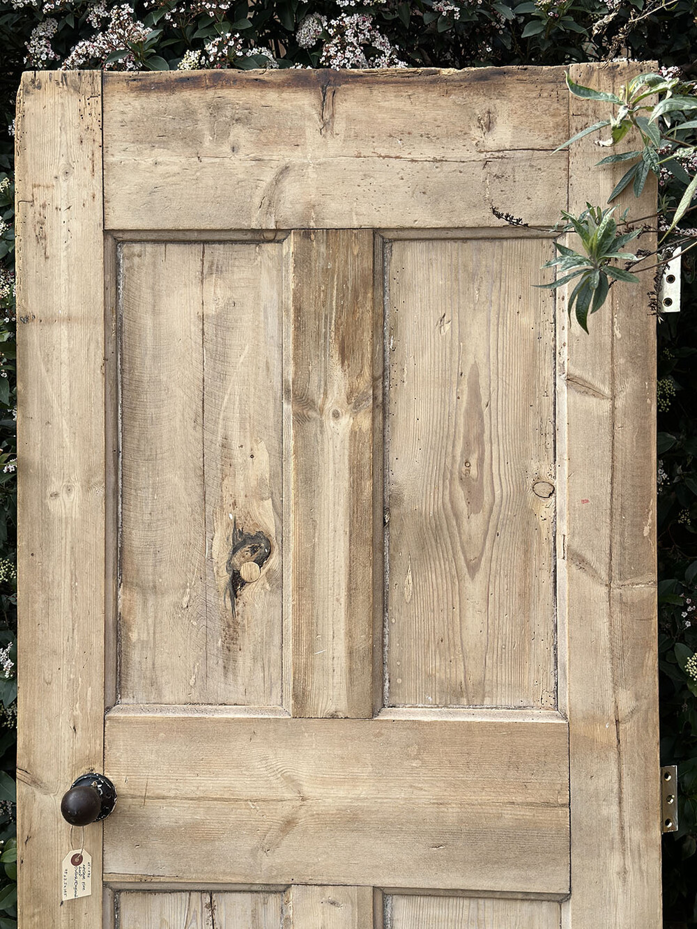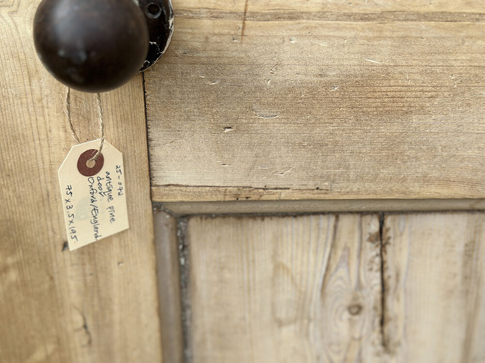 앤틱 파인 소재의 인터널 도어(중문 혹은 방문으로 사용된 실내용 문)입니다. 파인 소재의 가구들이 높은 가치를 형성하고 있는 것처럼, 역시 올드 파인 / 앤틱 파인 소재의 도어나 계단, 난간 등의 자재 역시 희소성이 매우 높은 편입니다. 도어 전체가 파인 원목의 내츄럴 우든 상태로 제작되어 있어 따뜻하고 정감이 가는 느낌을 자아냅니다. 도어 손잡이와 메탈 파츠들은 모두 주물 소재로 되어 있습니다.