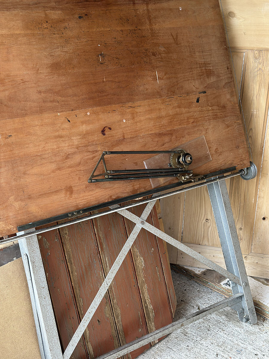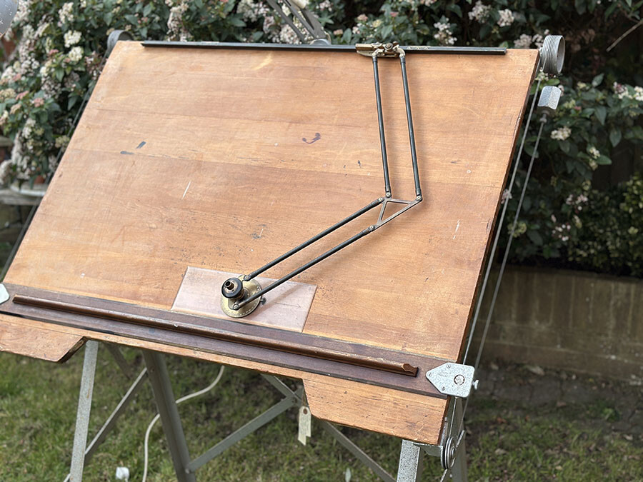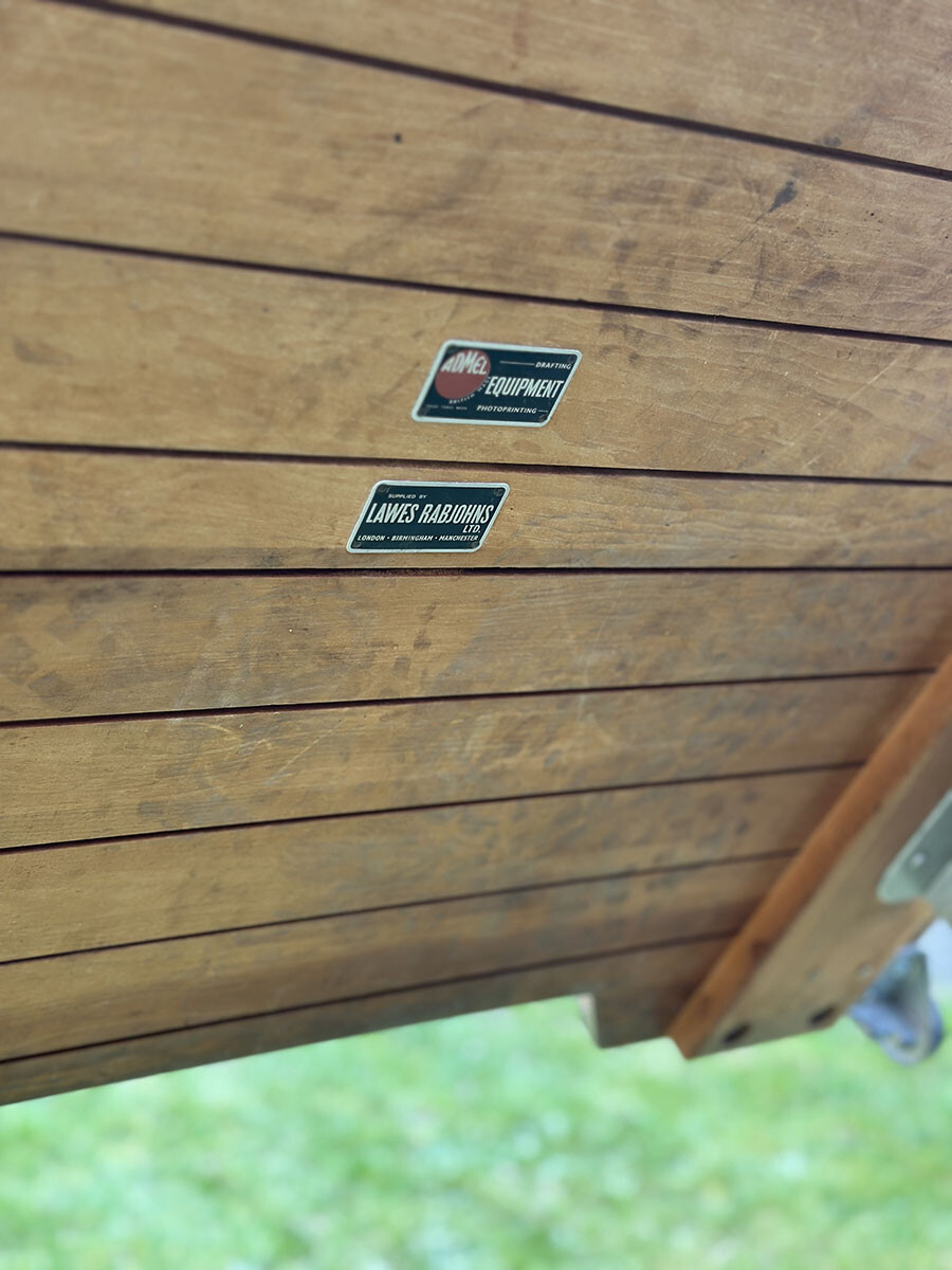 실사용이 가능한 영국의 정밀 기계 제조사 LAWES RABJOHNS LTD.가 제작한 빈티지 드로잉 데스크입니다. 산업 디자인이나 엔지니어링 설계가 수작업으로 이루어지던 시기의 도면용 책상으로, 작업 효율과 정밀성을 모두 고려한 구조가 인상적입니다.