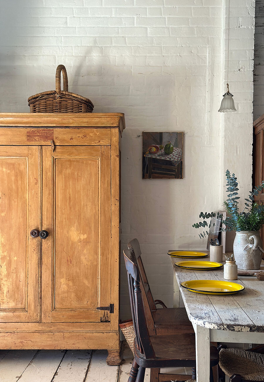 앤틱 파인 라더입니다. 라더(Larder)는 원래 돼지기름인 라드(Lard)를 비롯해 햄, 소시지, 치즈, 우유 등 부패하기 쉬운 식료품을 보관하기 위해 사용되던 가구입니다. 냉장고가 보급되기 전까지는 식료품을 보다 오래 보관하기 위해 통기성이 좋은 구조로 만들어졌고, 이후에는 식기나 식자재를 넣는 커보드로, 혹은 리넨 프레스처럼 천이나 커튼 등을 보관하는 용도로도 널리 쓰였습니다.