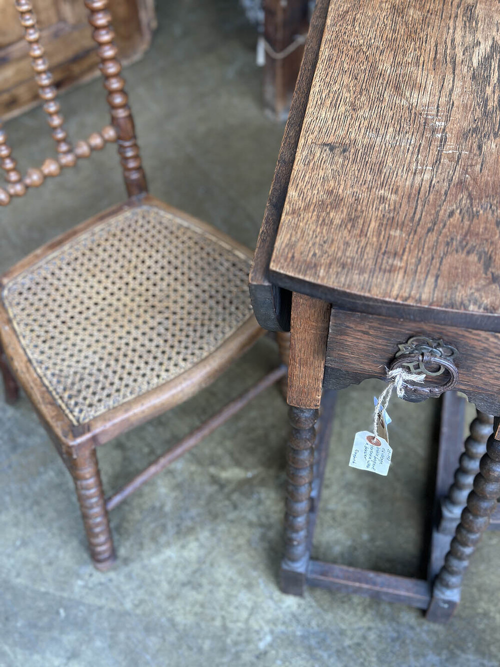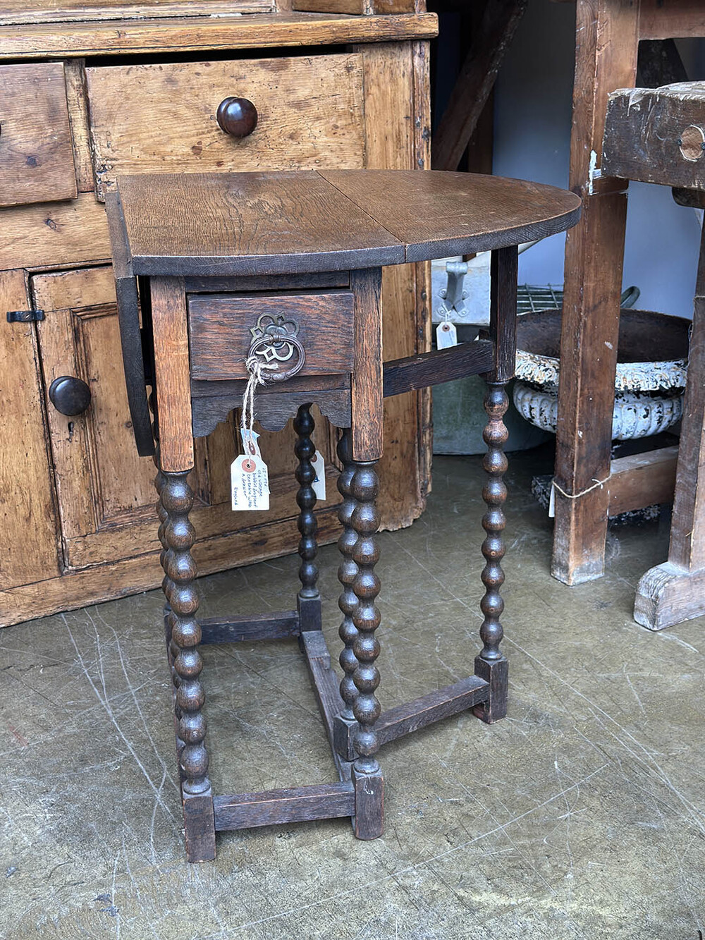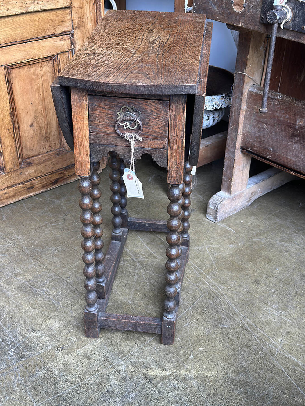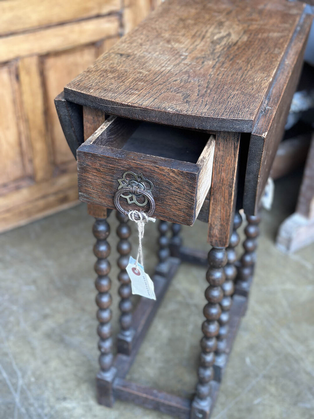 25-098 Old vintage bobbin drop leaf table with a drawer