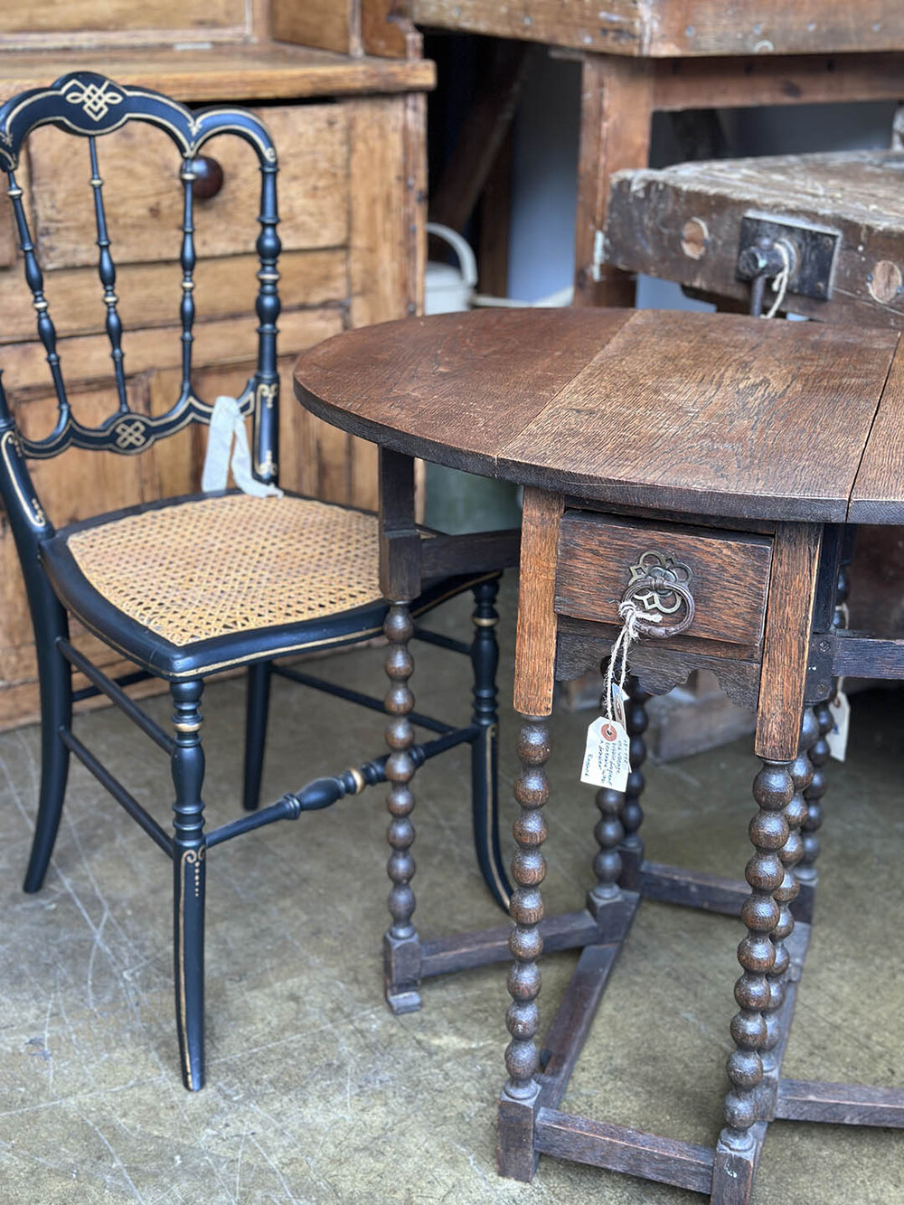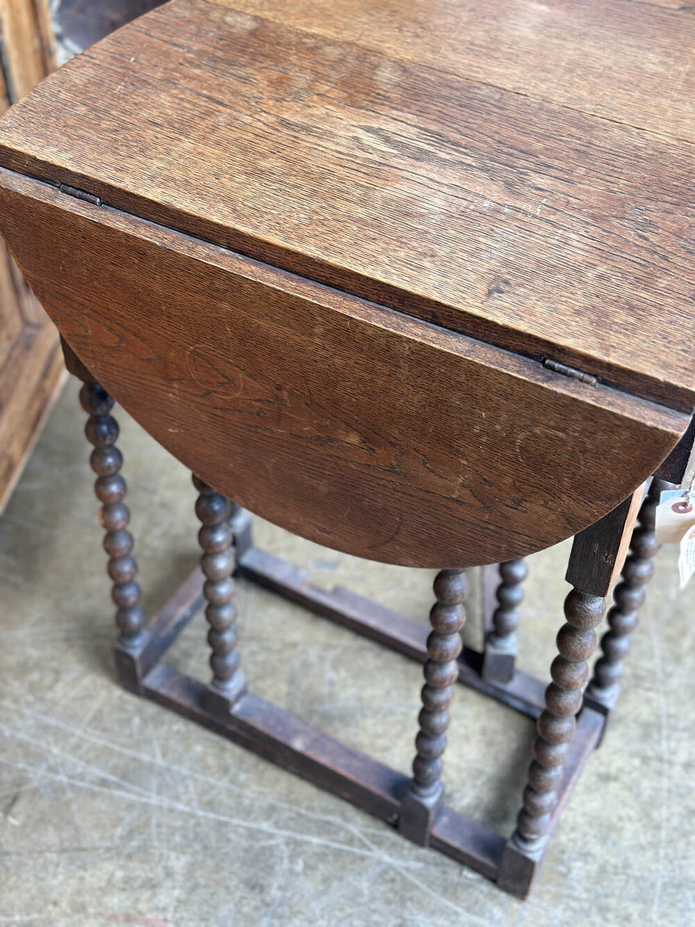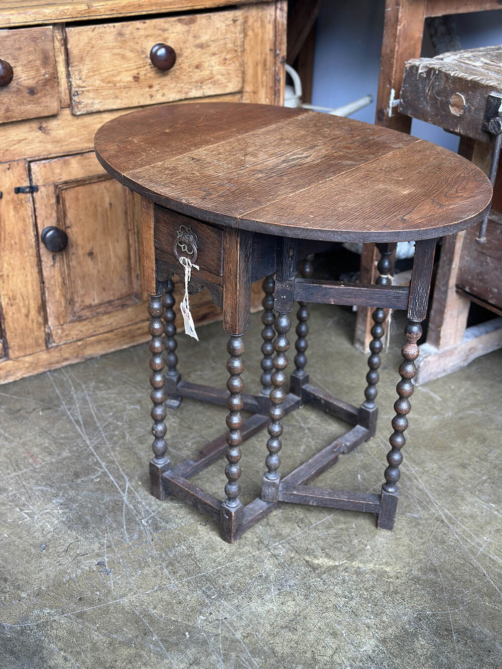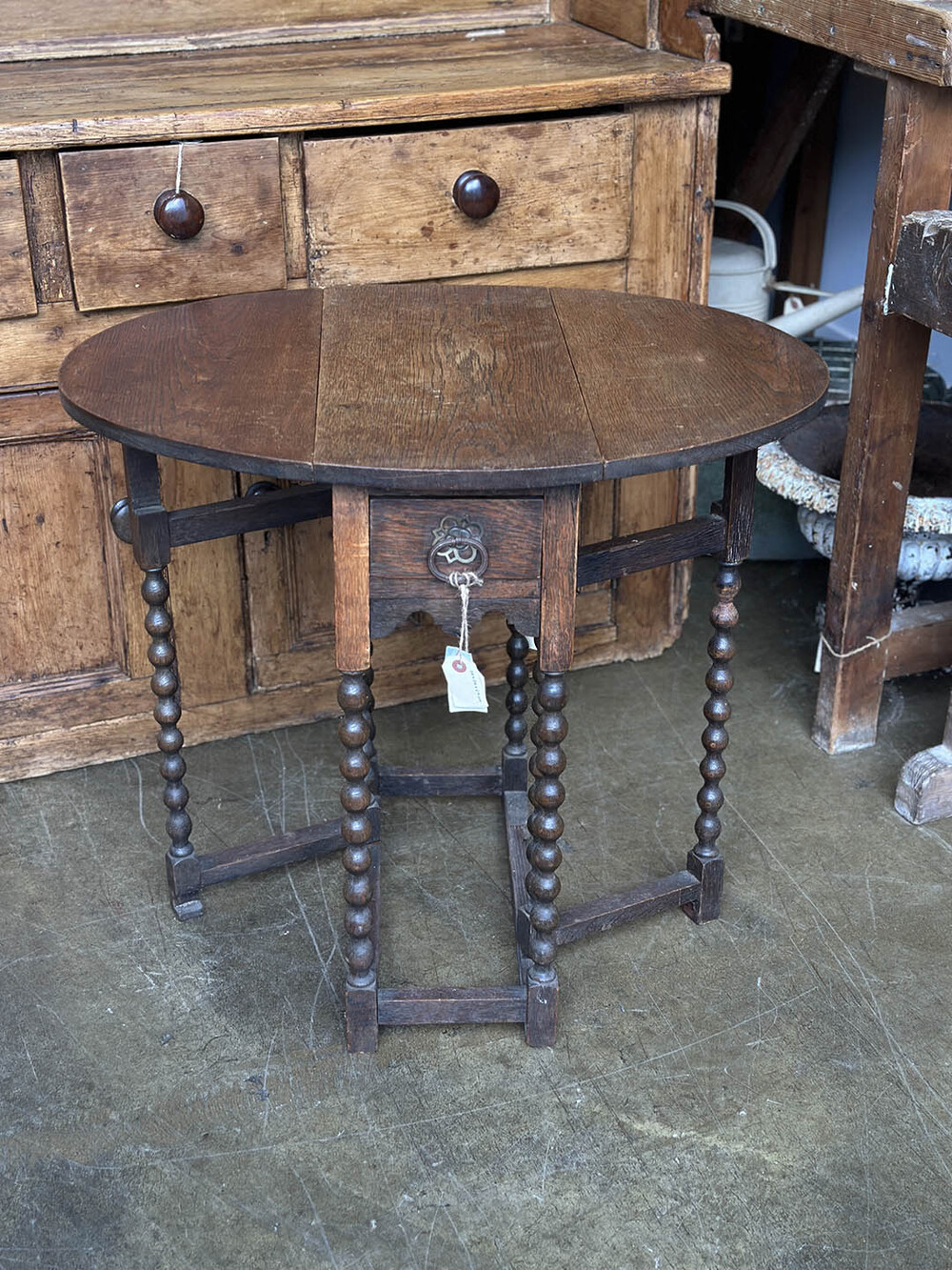 25-098 Old vintage bobbin drop leaf table with a drawer