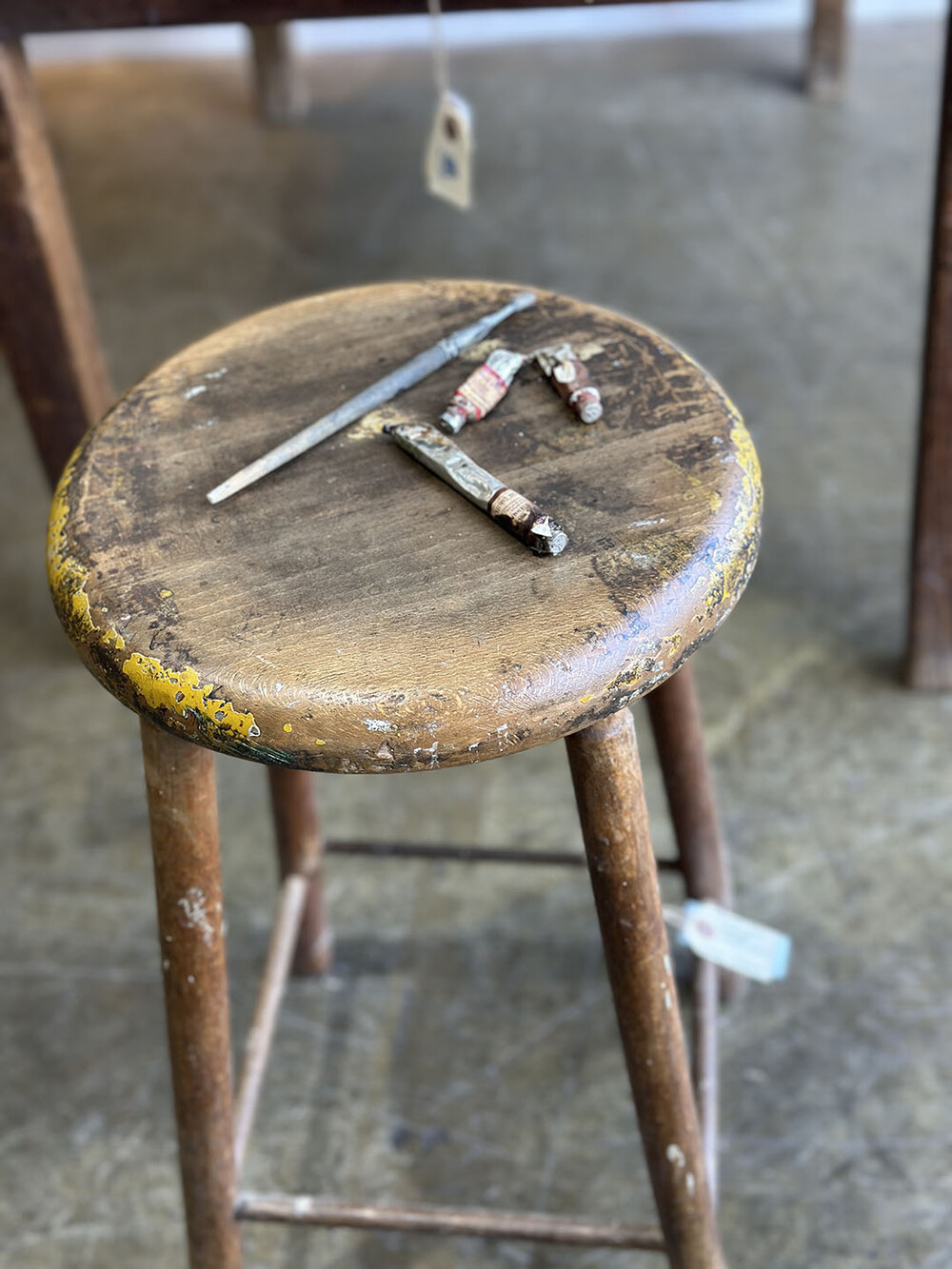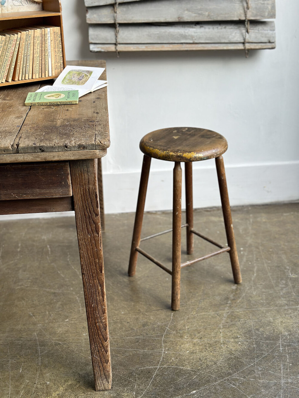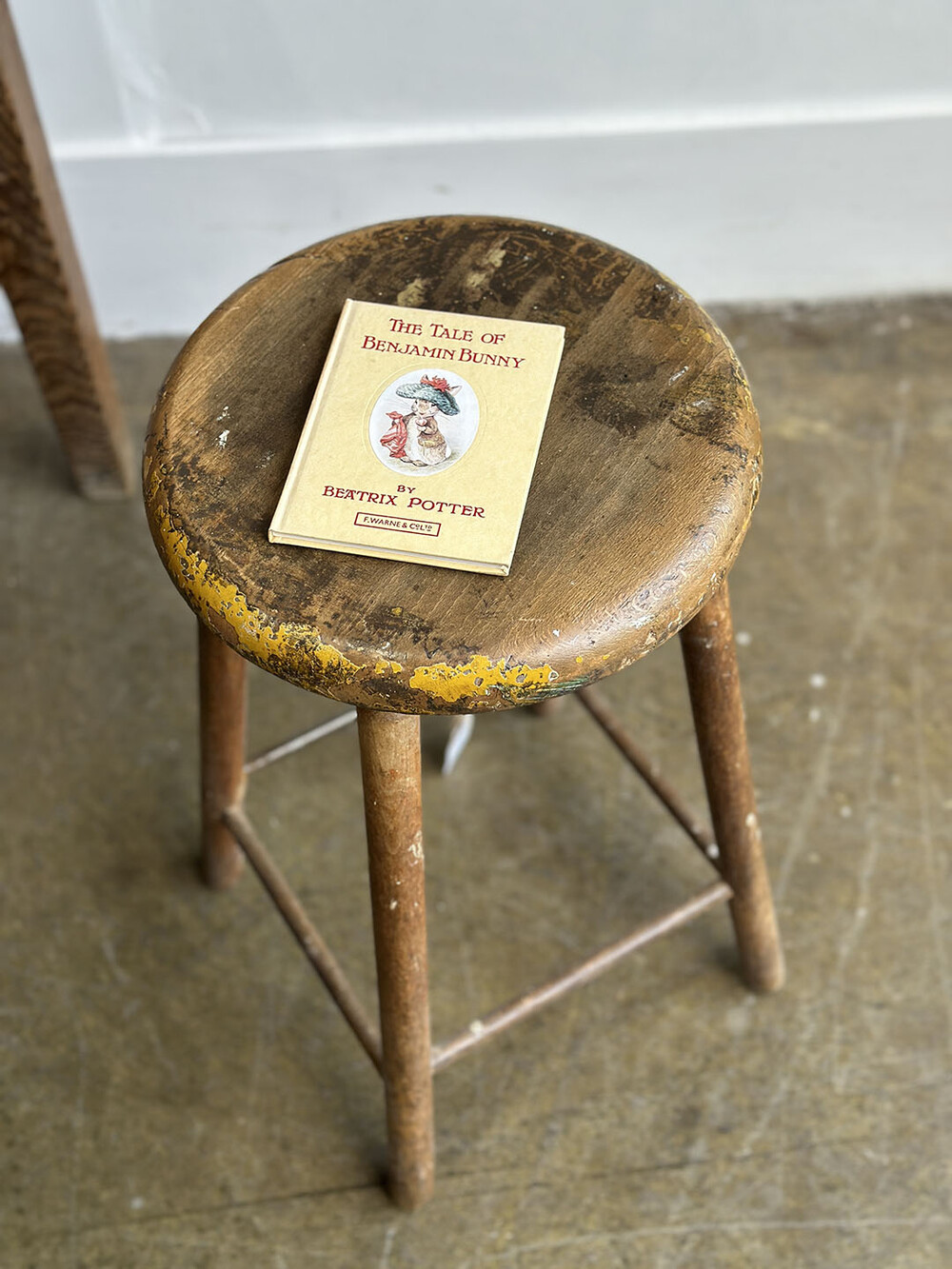 영국에서 수집된 이 스툴은 예술가가 자신의 아틀리에에서 사용하던 작업용 스툴이었습니다. 선반으로 깎아 만든 터닝 레그에 스트레쳐가 강하게 결합된 방식은 이 스툴이 영국의 컨트리 퍼니쳐 계열의 특성을 갖고 있다는 점을 보여주죠.