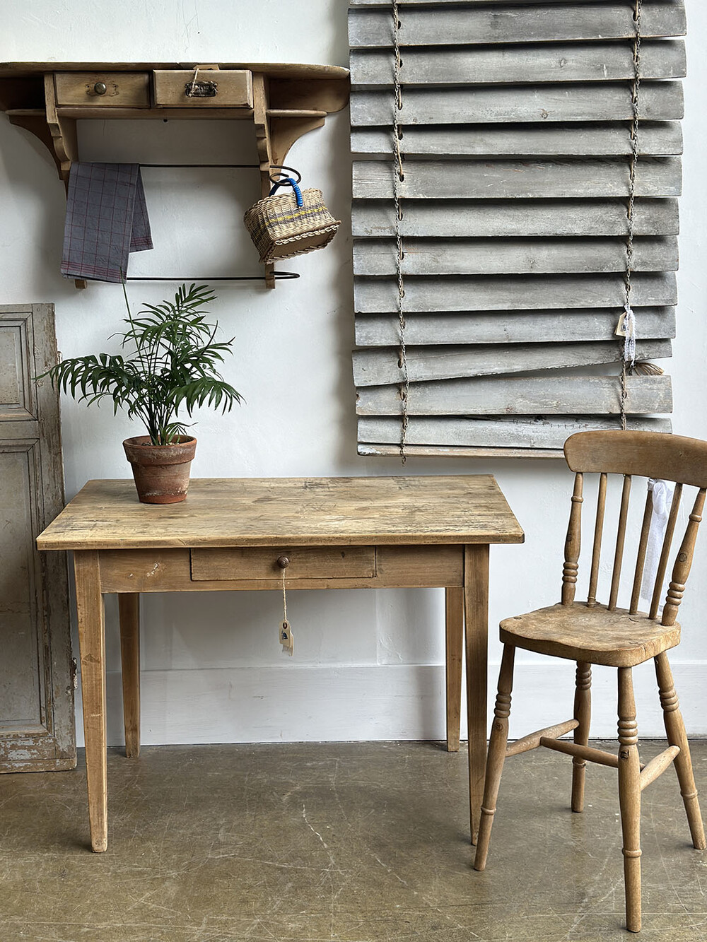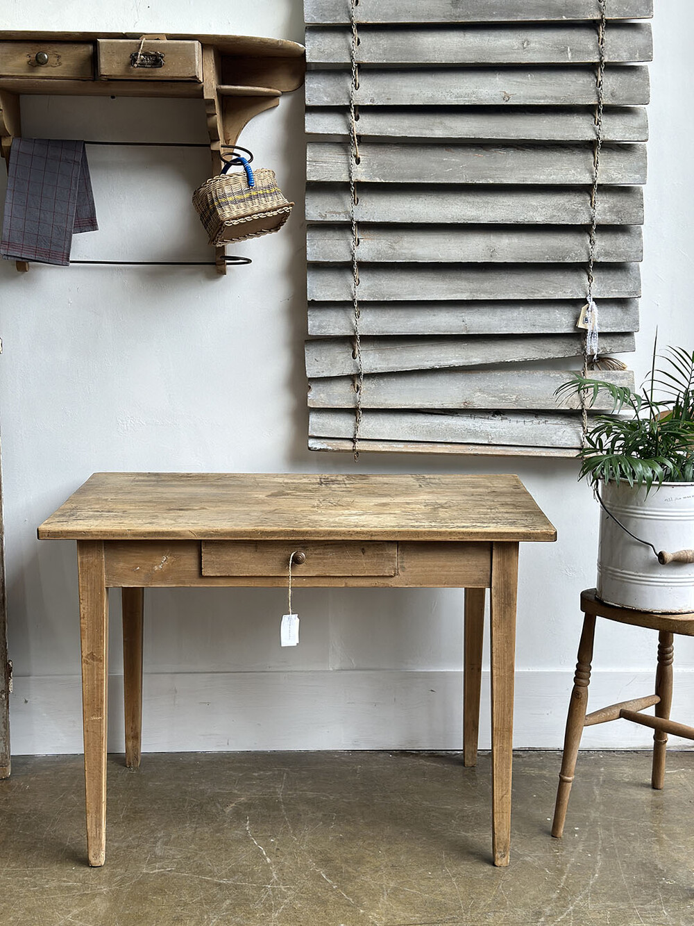 25-134 Vintage French wood table with a drawer