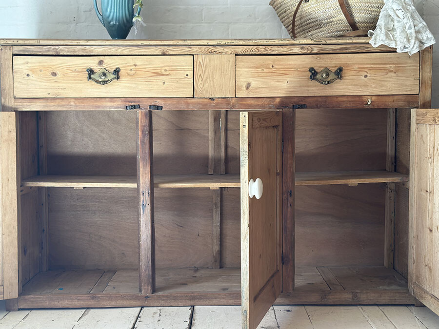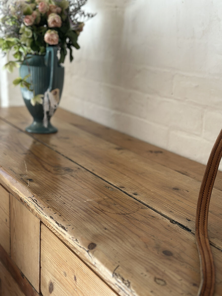 시간의 흐름에 따라 생긴 자연스러운 마모와 색감, 군데군데 보이는 작은 흔적들은 오히려 이 가구의 진정한 가치를 증명합니다. 빅토리안 파인 사이드보드는 단순한 수납가구를 넘어 공간에 중후한 멋과 이야기를 더해주는 중심이 되어줄 것입니다.