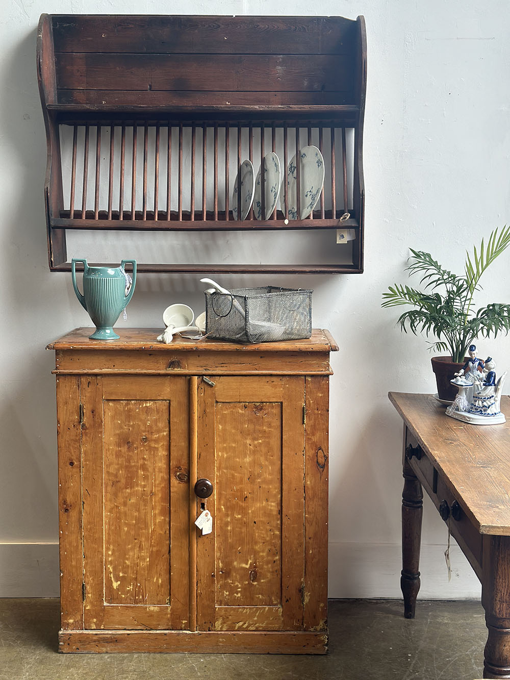 앤틱 파인 소재의 스몰 커보드입니다. 빅토리아 시대의 컨트리 퍼니쳐가 갖고 있는 매우 심플하면서도 당대에 유행했던 신고전주의적인 장식 요소들이 반영되어 있는 시대적 미감을 갖고 있습니다. 내부에는 쉐비 시크 페인팅이 되어 있는데, 페인팅과 내추럴 우든이 섞여 있어 들뜨지 않고 차분함을 느낄 수 있습니다. 앤틱 파인의 소재적 특징상 무겁지 않고, 가벼운 편이라 잦은 위치 변경이 있더라도 힘들지 않을 아이템입니다.