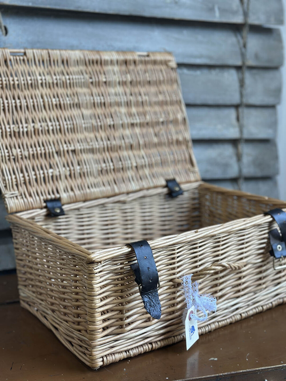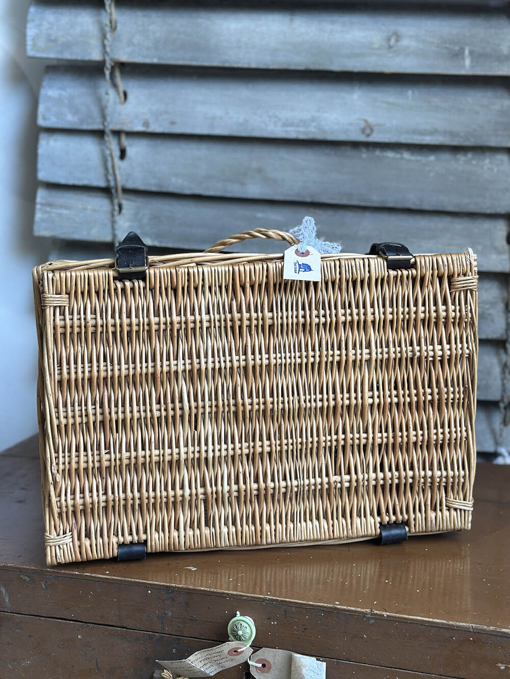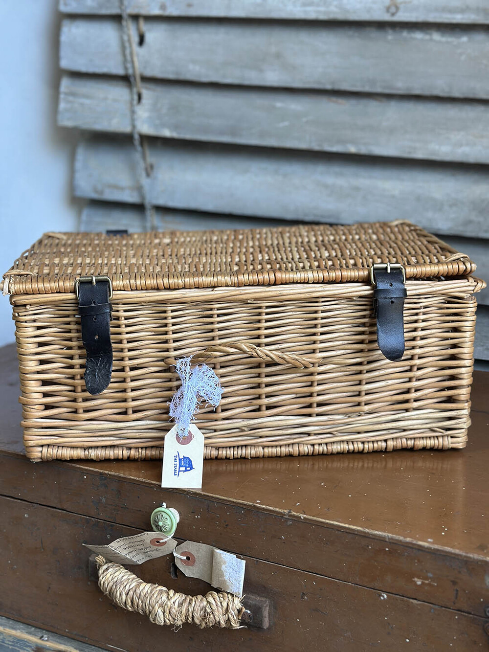이 바스켓은 실사용을 염두에 두고 만들어진 1960년대 이전의 피크닉 바스켓으로, 가죽 버클과 안정적인 구조가 그대로 남아 있어요. 요즘은 같은 형태가 플라스틱으로 대체되거나, 전혀 다른 재질로 바뀌었기 때문에 천연 위커 바스켓은 더 희소해졌죠.