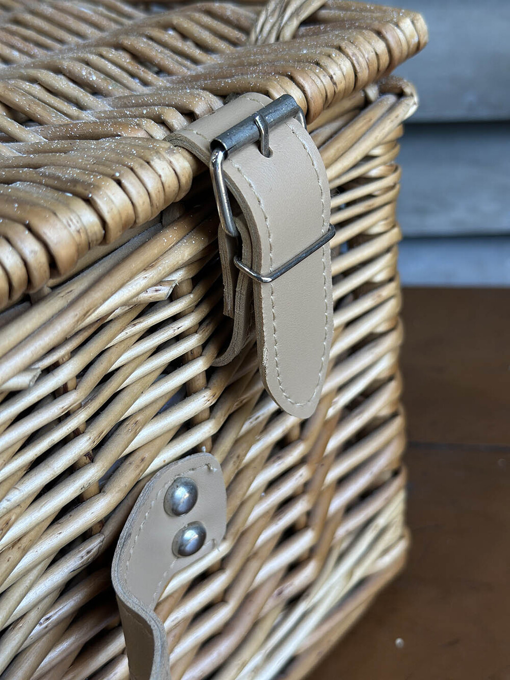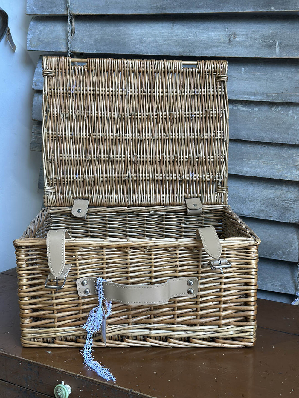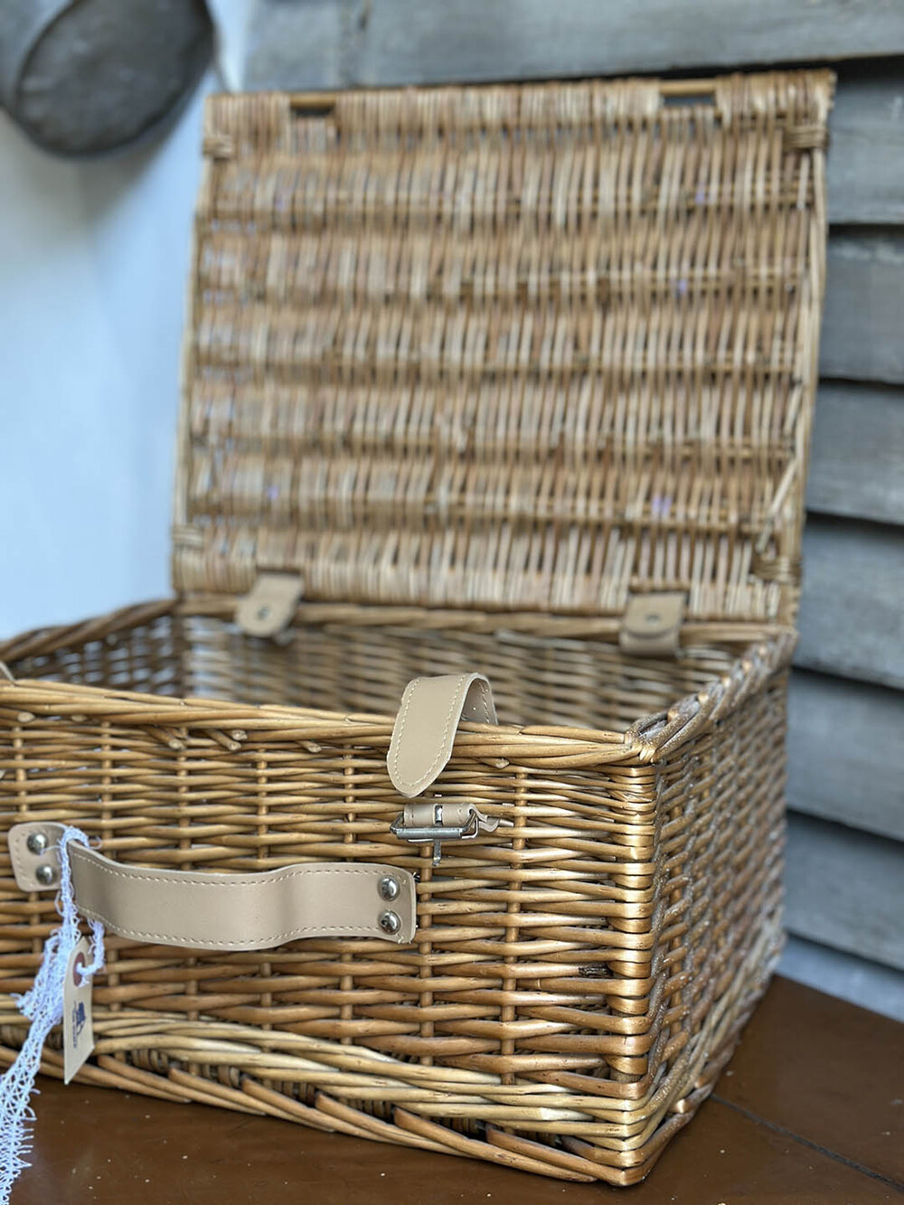 이 바스켓은 실사용을 염두에 두고 만들어진 1960년대 이전의 피크닉 바스켓으로, 가죽 버클과 안정적인 구조가 그대로 남아 있어요. 요즘은 같은 형태가 플라스틱으로 대체되거나, 전혀 다른 재질로 바뀌었기 때문에 천연 위커 바스켓은 더 희소해졌죠. (가죽 버클 부분은 최근에 리플레이스 된 것으로 보입니다)
