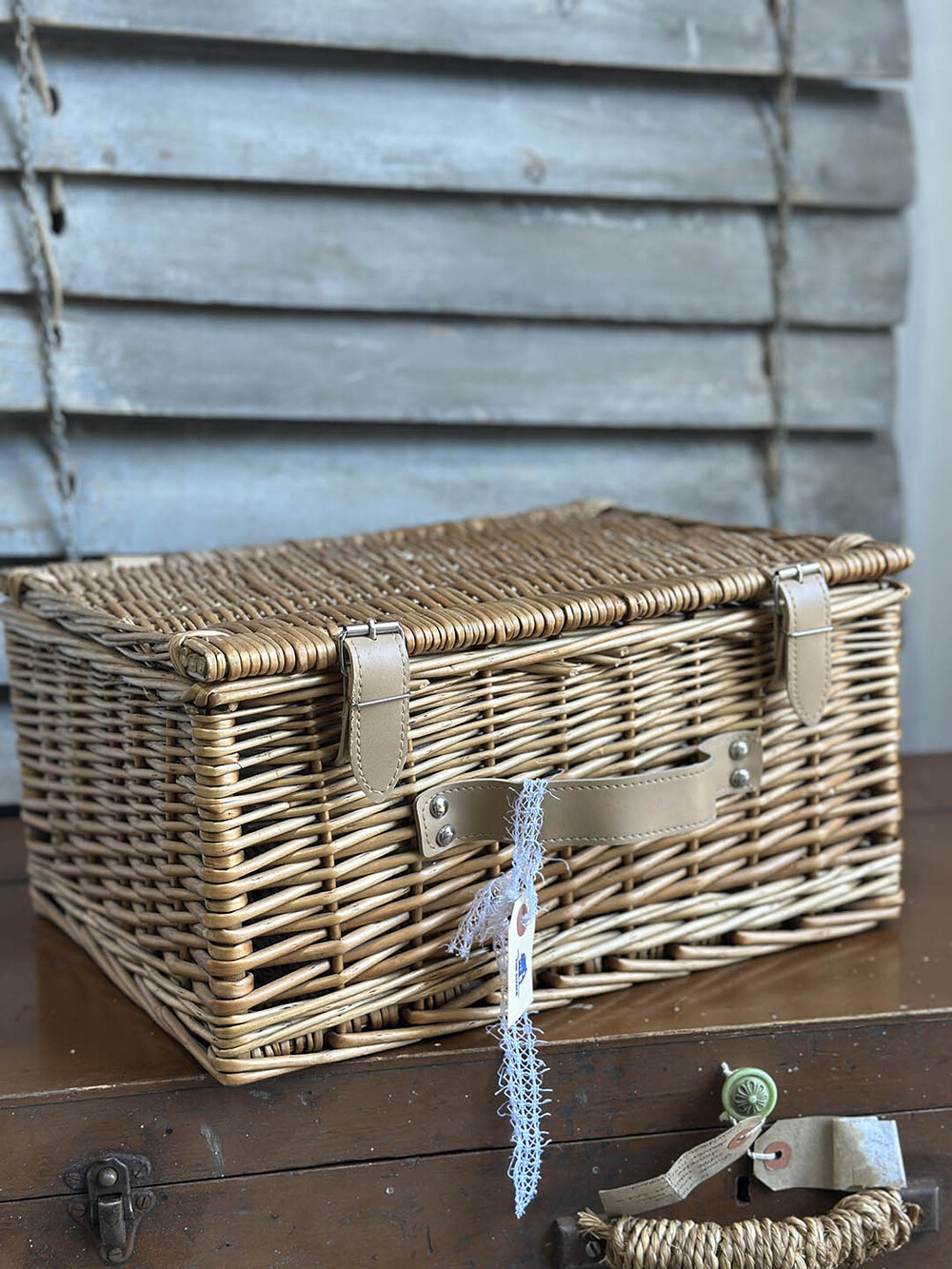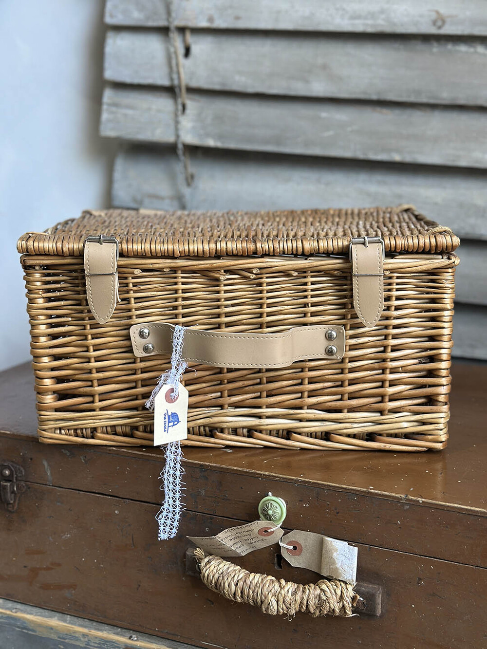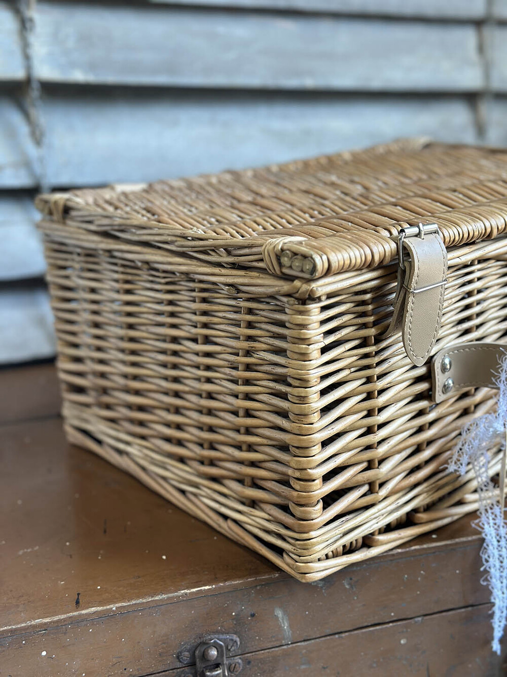 이 바스켓은 실사용을 염두에 두고 만들어진 1960년대 이전의 피크닉 바스켓으로, 가죽 버클과 안정적인 구조가 그대로 남아 있어요. 요즘은 같은 형태가 플라스틱으로 대체되거나, 전혀 다른 재질로 바뀌었기 때문에 천연 위커 바스켓은 더 희소해졌죠. (가죽 버클 부분은 최근에 리플레이스 된 것으로 보입니다)