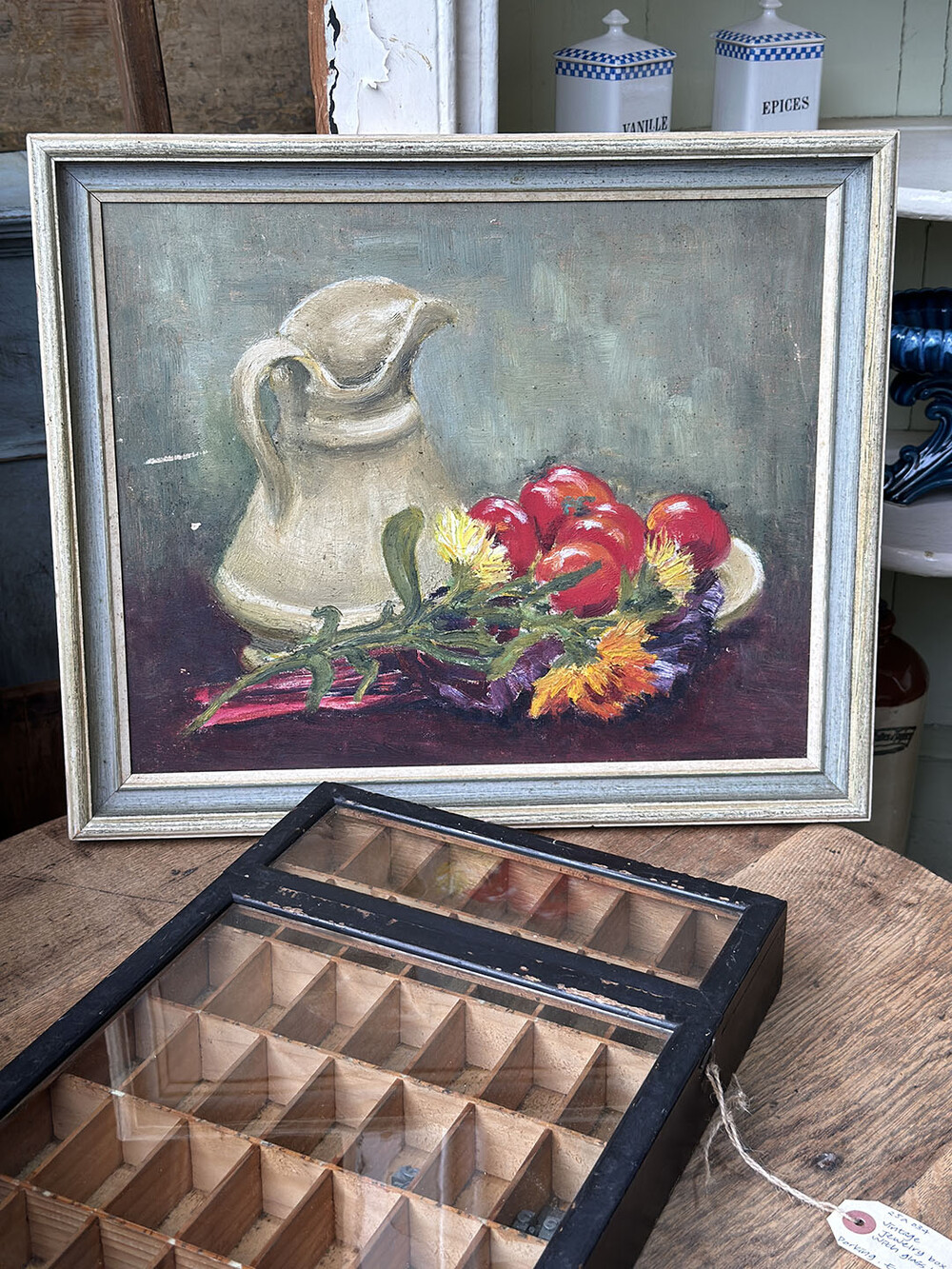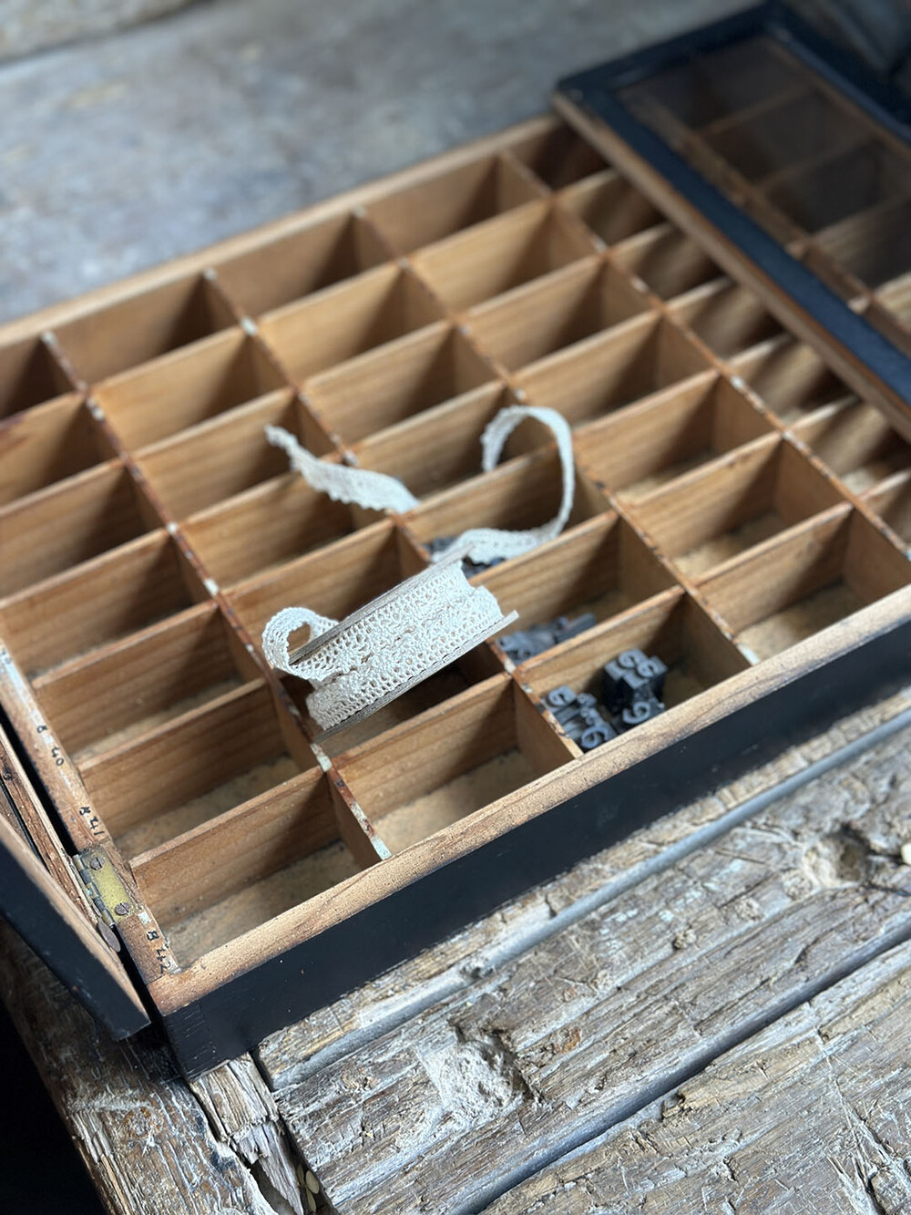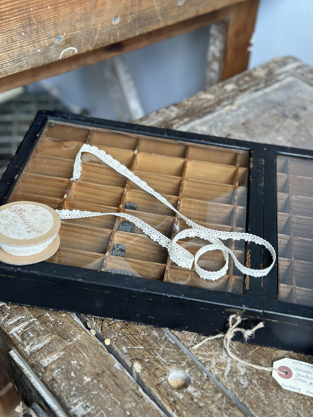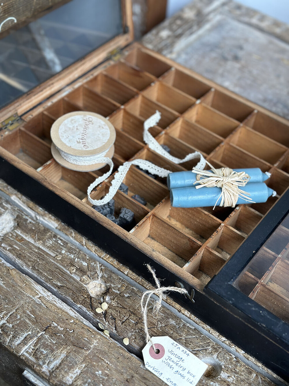 빈티지 주얼리 박스입니다. 에보니(흑단) 컬러의 프레임 박스에 글레이즈드 글래스가 추가된 커버 리드가 양쪽으로 열리게 되어 있습니다.