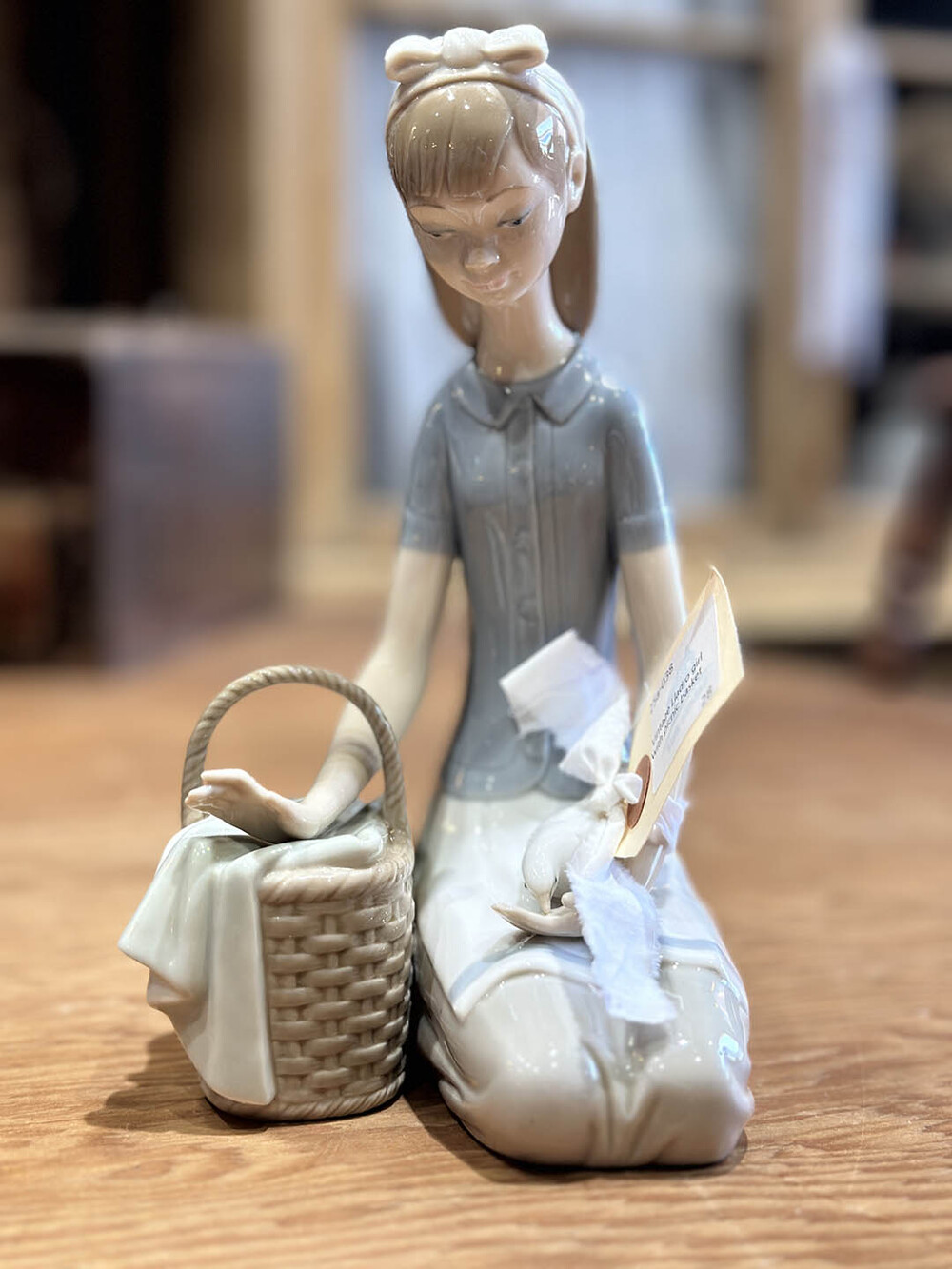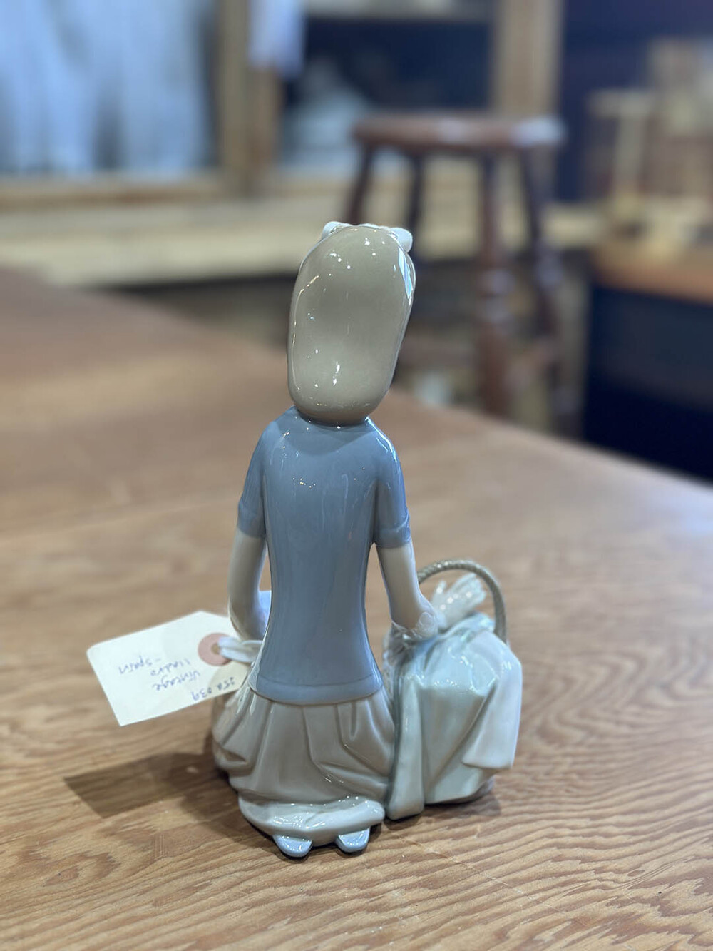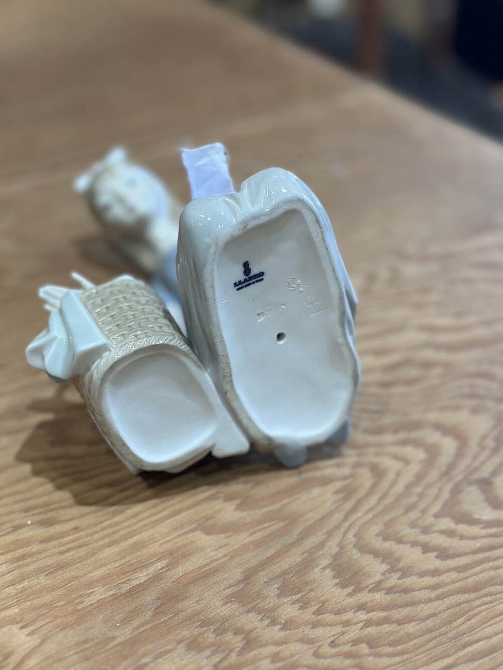 스페인에서 생산된 빈티지 야드로(Lladro)입니다. 야드로(Lladro)는 1953년 스페인의 알마세라 마을에서 후안, 호세, 비센테 야드로 세 형제로부터 시작 되었는데, 그들의 집에 있었던 마이센, 세브르, 카포디몬테 등과 같은 유럽의 도자기 작품들에서 영감을 받아 접시, 꽃병, 피규어를 만들기 시작했습니다. 세련되고 캐릭터 있는 피규어들이 특히 인기를 얻었고, 세밀한 조형미를 가진 피규어들이 '야드로'라는 대명사처럼 불리우기 시작하여 지금에 이르렀습니다.