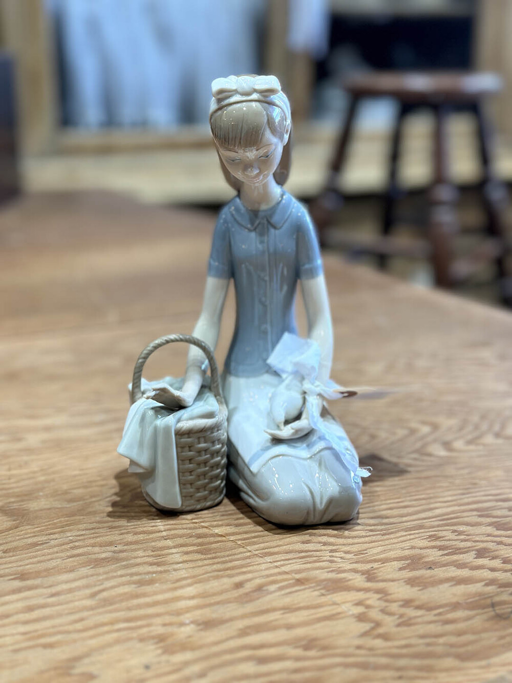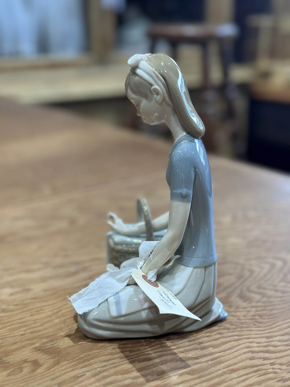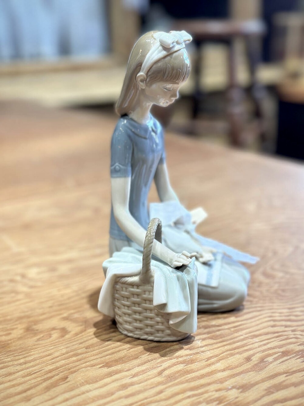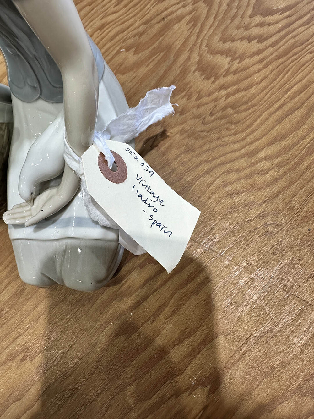 스페인에서 생산된 빈티지 야드로(Lladro)입니다. 야드로(Lladro)는 1953년 스페인의 알마세라 마을에서 후안, 호세, 비센테 야드로 세 형제로부터 시작 되었는데, 그들의 집에 있었던 마이센, 세브르, 카포디몬테 등과 같은 유럽의 도자기 작품들에서 영감을 받아 접시, 꽃병, 피규어를 만들기 시작했습니다. 세련되고 캐릭터 있는 피규어들이 특히 인기를 얻었고, 세밀한 조형미를 가진 피규어들이 '야드로'라는 대명사처럼 불리우기 시작하여 지금에 이르렀습니다.