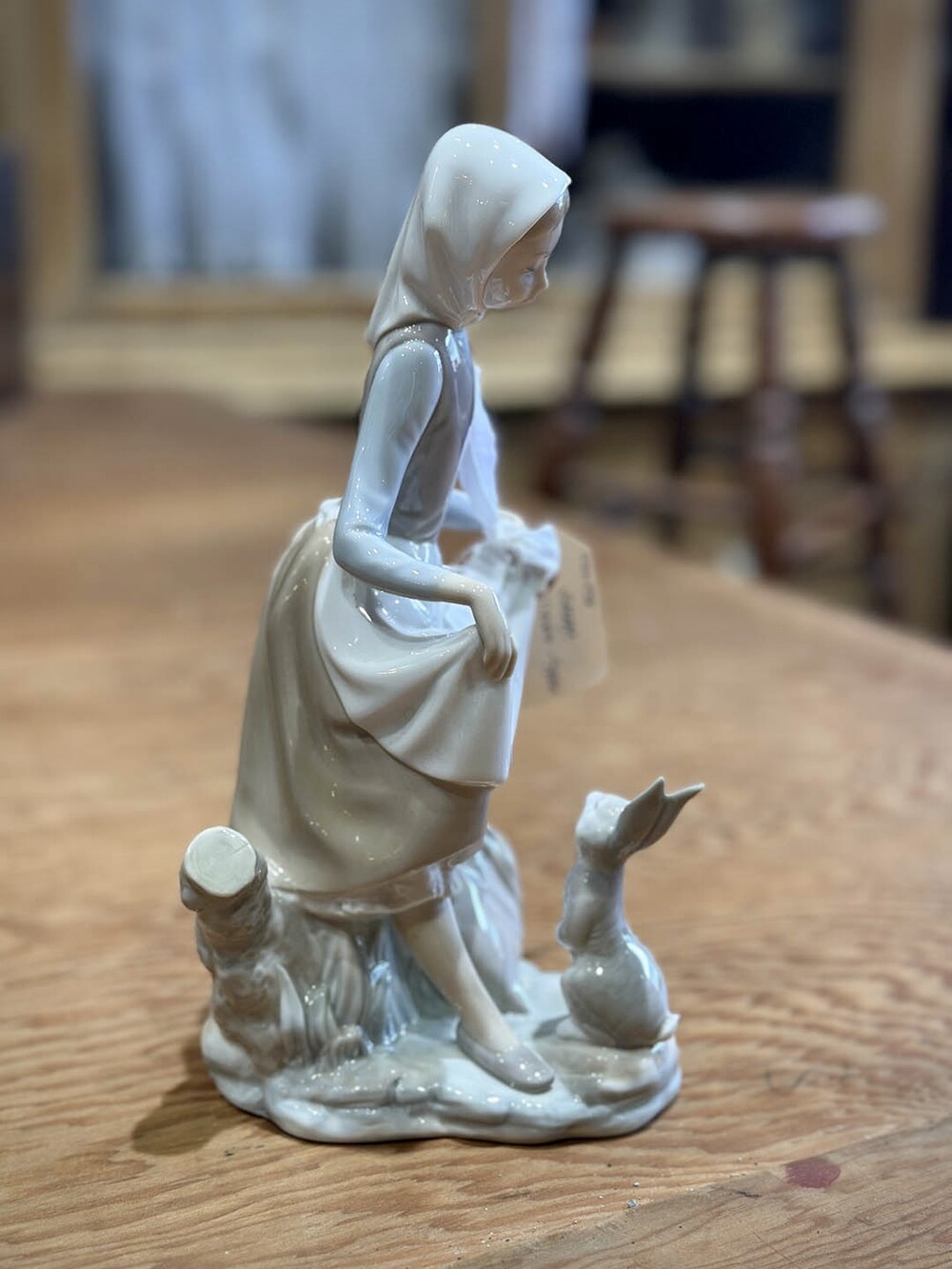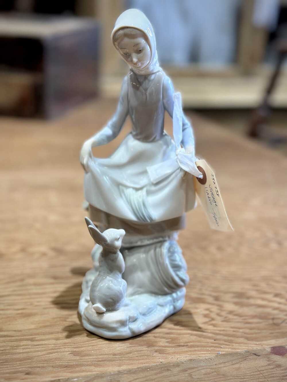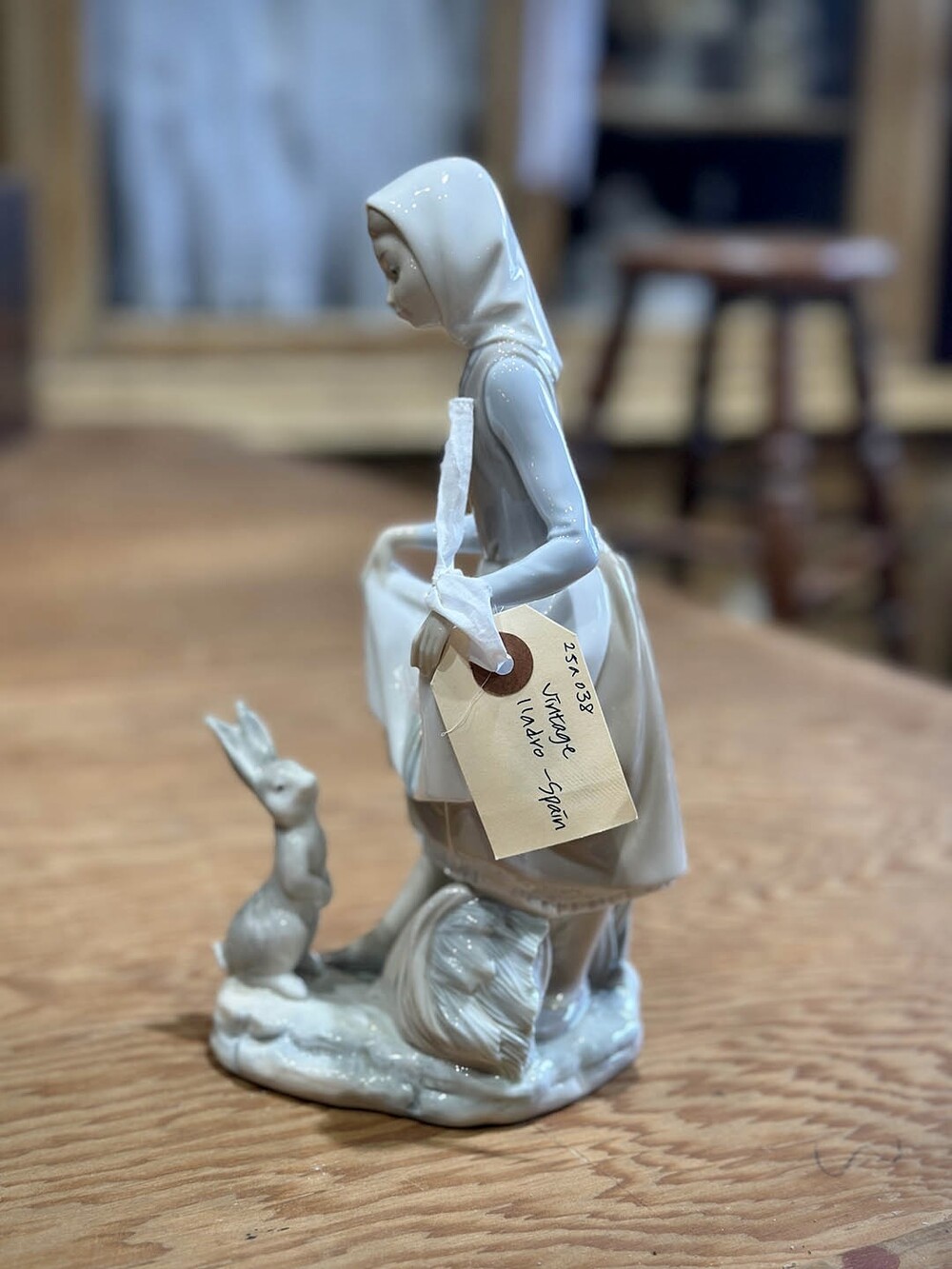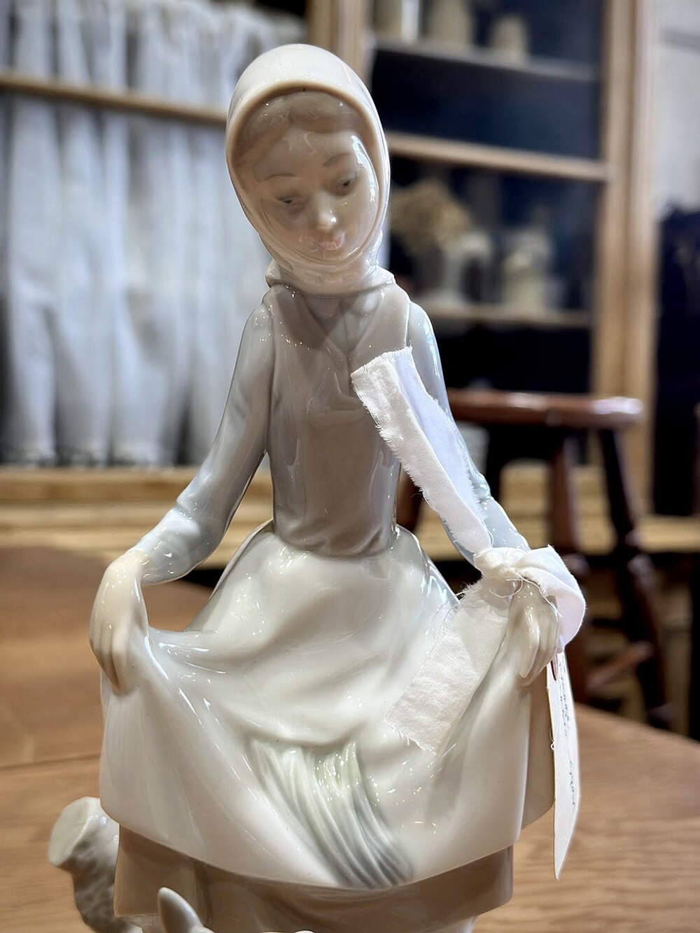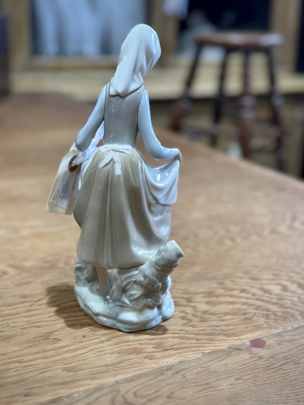 스페인에서 생산된 빈티지 야드로(Lladro)입니다. 야드로(Lladro)는 1953년 스페인의 알마세라 마을에서 후안, 호세, 비센테 야드로 세 형제로부터 시작 되었는데, 그들의 집에 있었던 마이센, 세브르, 카포디몬테 등과 같은 유럽의 도자기 작품들에서 영감을 받아 접시, 꽃병, 피규어를 만들기 시작했습니다. 세련되고 캐릭터 있는 피규어들이 특히 인기를 얻었고, 세밀한 조형미를 가진 피규어들이 '야드로'라는 대명사처럼 불리우기 시작하여 지금에 이르렀습니다.