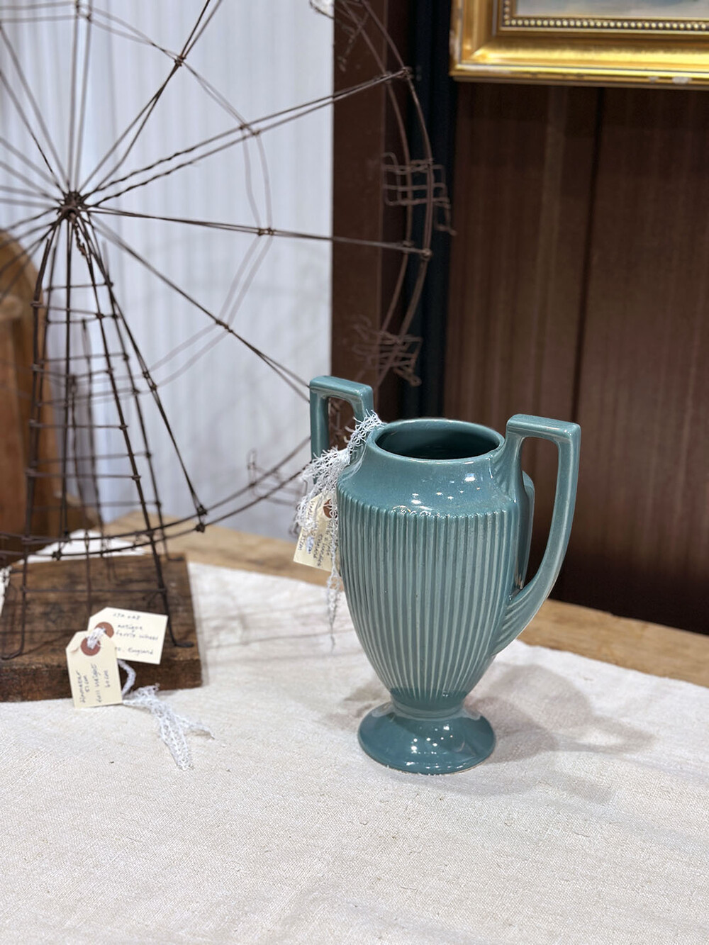 25a-043 Vintage Dartmouth ceramic flower vase with 2 handles