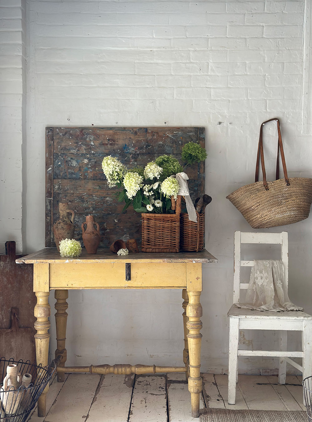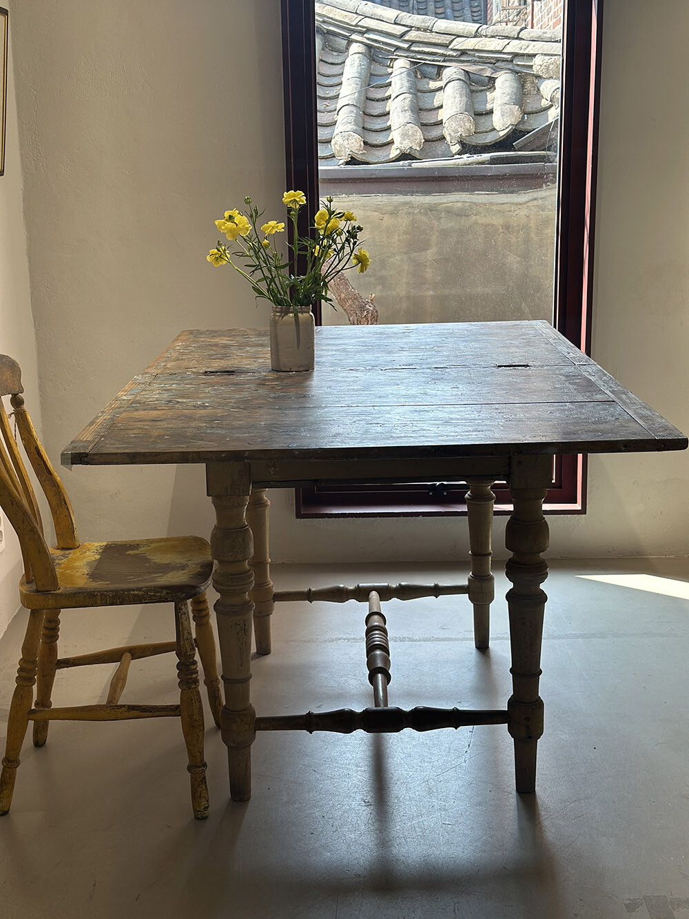 테이블 자체에는 빅토리안 컨트리 퍼니처의 특징이 잘 드러나 있습니다. 선반처럼 깎아낸 빅토리안 턴드 레그가 하부를 견고하게 받치고 있으며, 다리와 다리 사이에도 동일한 터닝 파츠를 스트레처로 사용해 안정감을 더했습니다. 잉글리시 머스터드 컬러의 색감은 공간에 은은한 포인트를 더해, 신선한 분위기를 만들어줄 거예요.