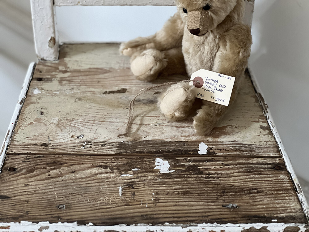 작은 체어이지만 실제 사용을 전제로 만들어진 구조를 갖고 있어, 단순한 장식용을 넘어 공간 안에서 자연스럽게 기능과 오브제 역할을 함께 수행합니다. 아이의 체어로 두거나, 인형이나 소형 오브제를 올려두는 연출만으로도 한 켠의 분위기를 완성해주는, 세월의 미감이 잘 살아 있는 피스예요.