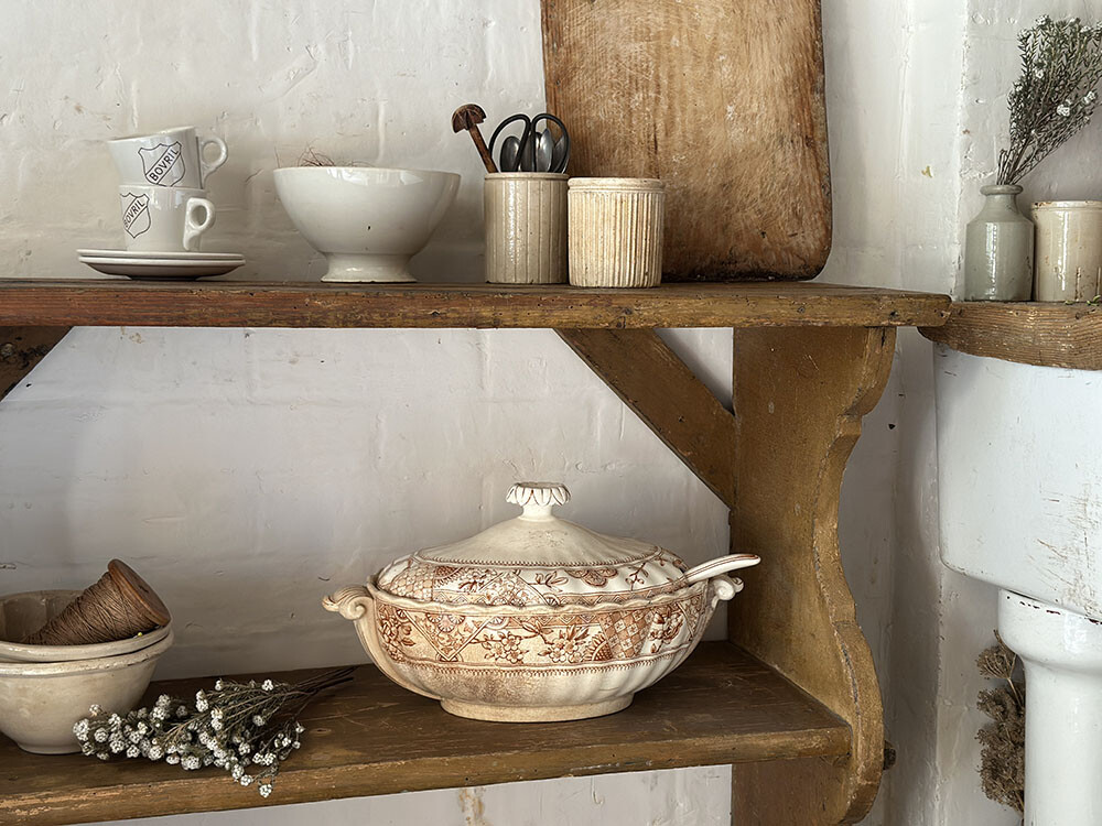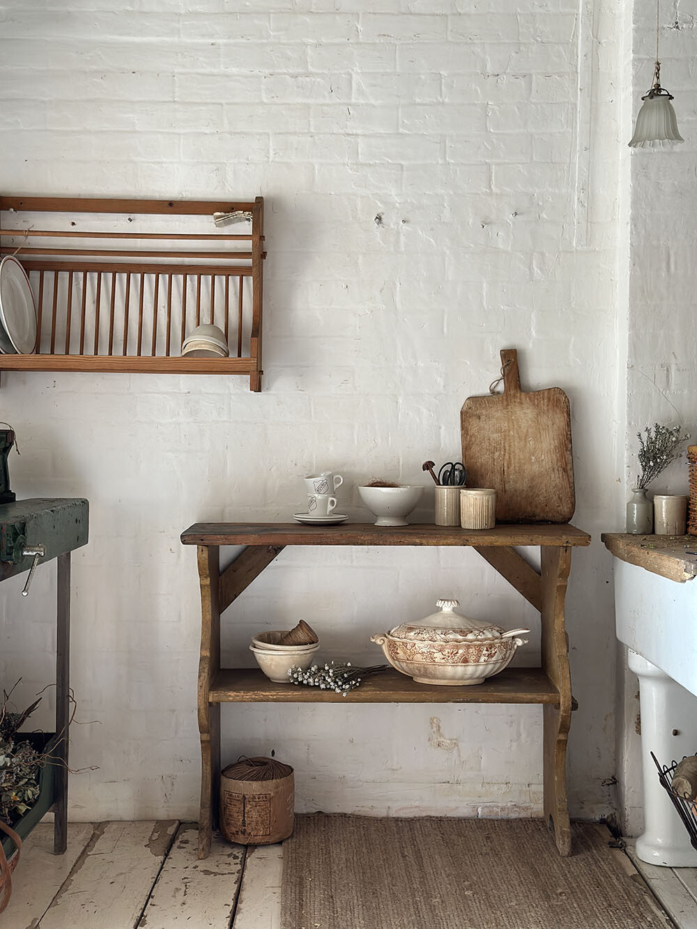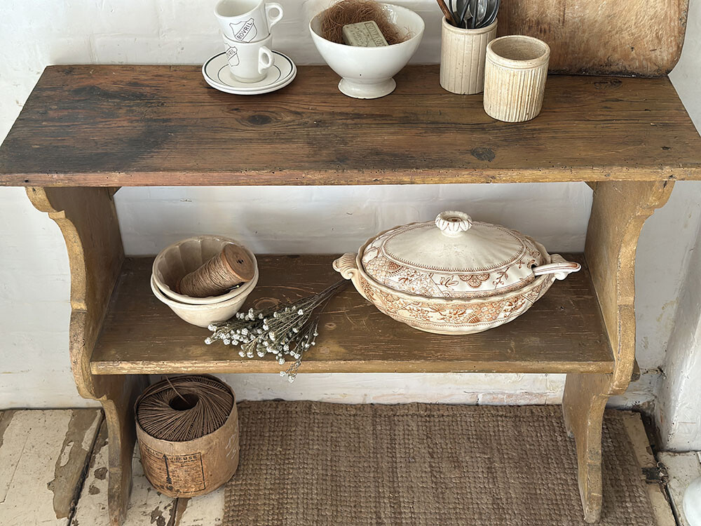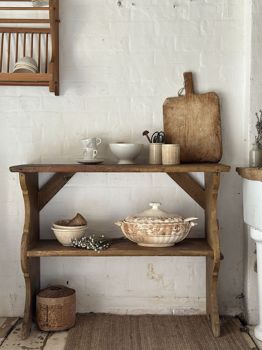 빅토리안 시대 컨트리 퍼니처의 수수하고 절제된 미감이 고스란히 남아 있는 쉘프입니다. 장식적인 요소를 거의 배제한 단순한 구조와 비례감이 인상적이며, 실사용 가구로서의 목적에 충실한 형태를 유지하고 있습니다.