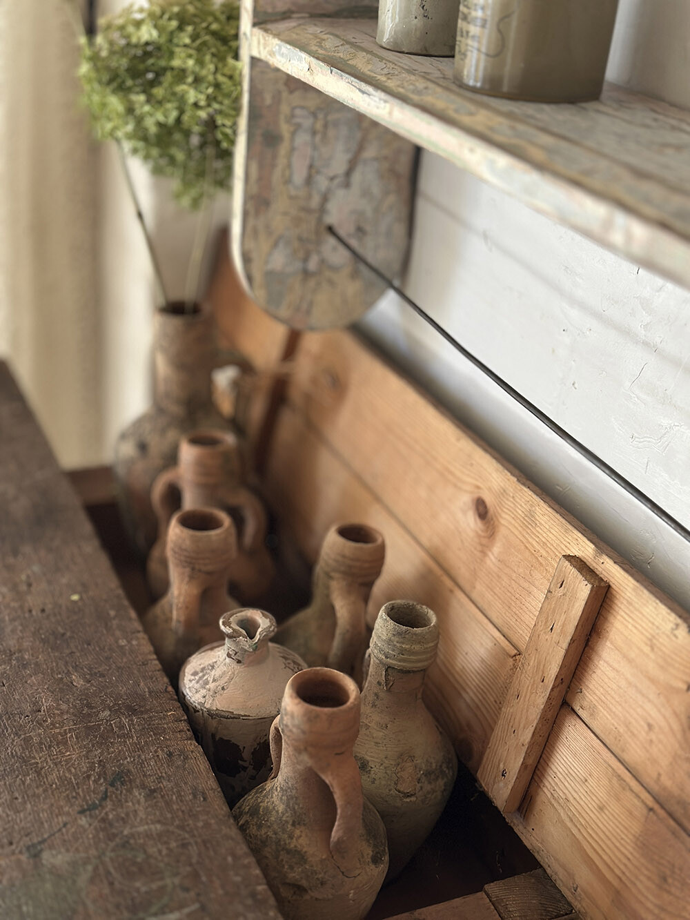 영국의 쉡튼 말렛 지역에서 수집된 올드 빈티지 워크벤치예요. 두꺼운 원목 상판과 투박한 다리 구조에, 작업용 가구인만큼 오랜 사용으로 생긴 찍힘과 마모, 얼룩 등이 그대로 남아 파티나로 형성되어 있습니다. 인위적인 연출이 아닌, 실제 생활과 노동의 시간이 쌓여 만들어진 표정이라고 할 수 있어요.