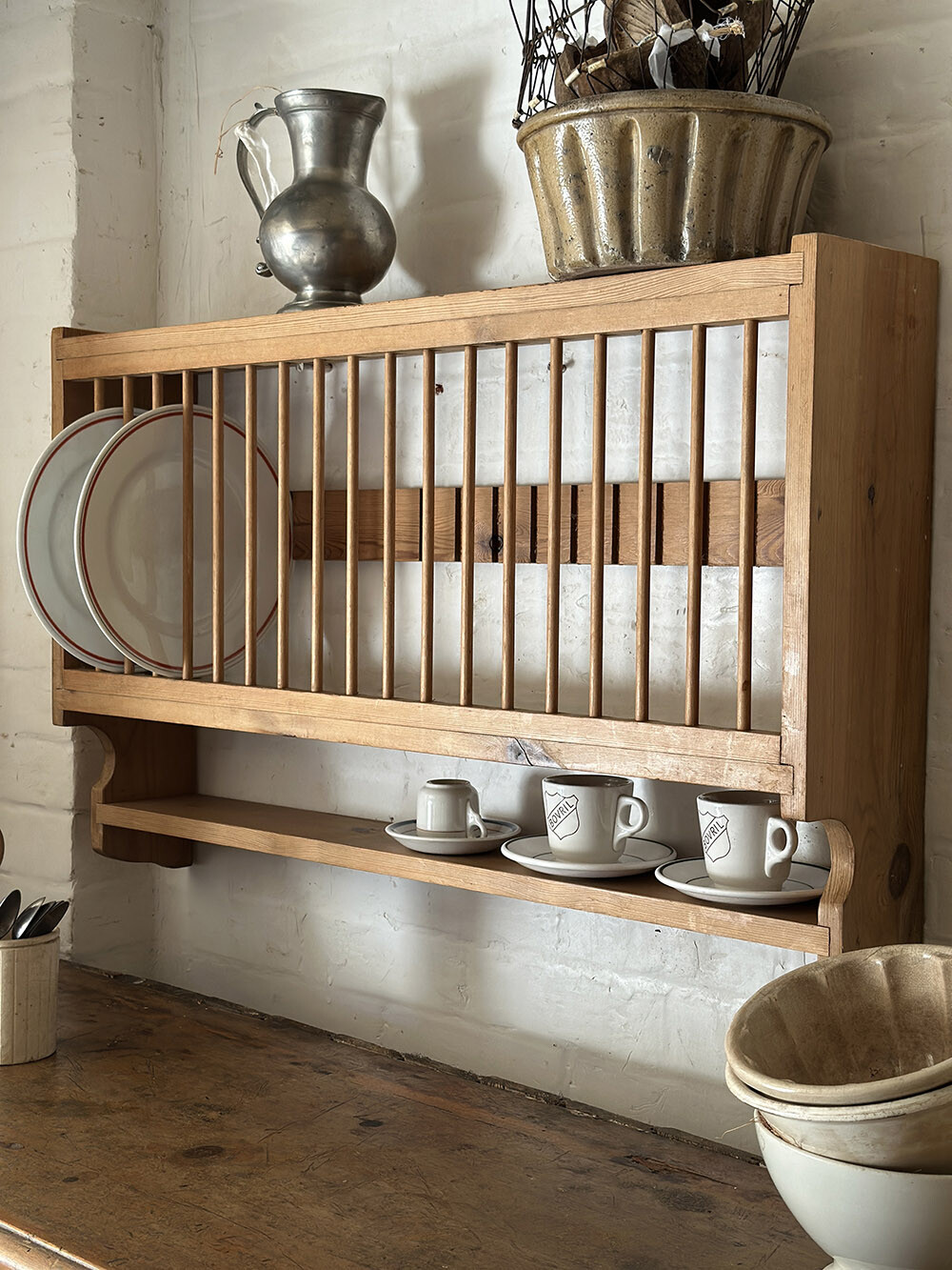 26-068 Vintage pine plate rack