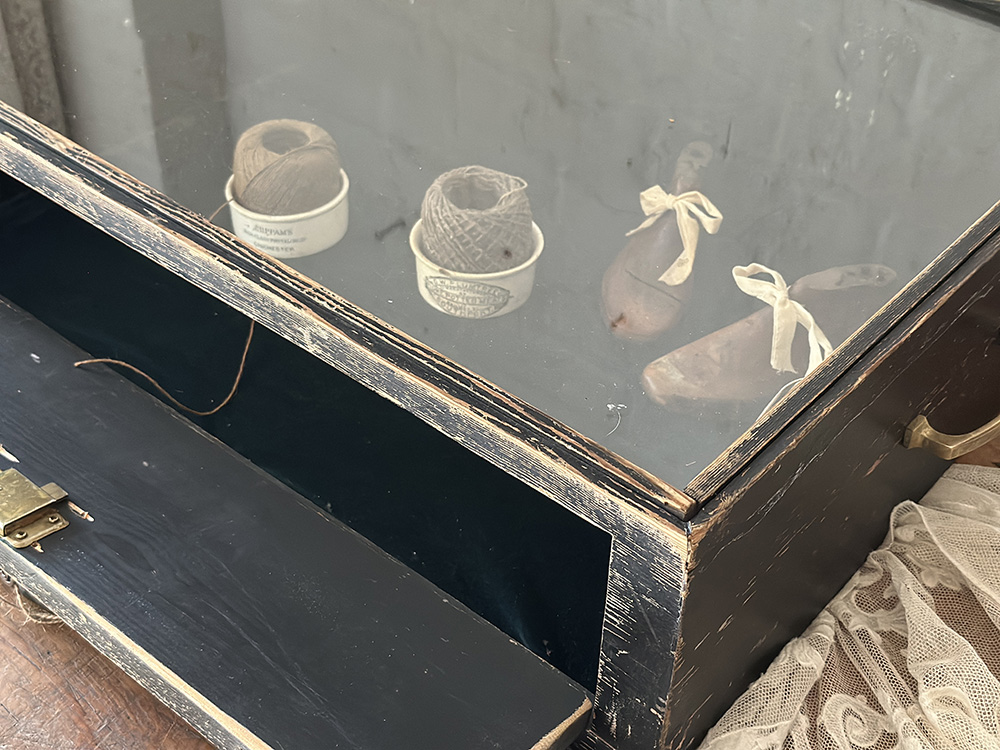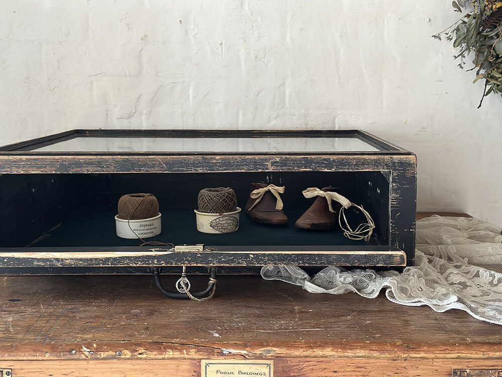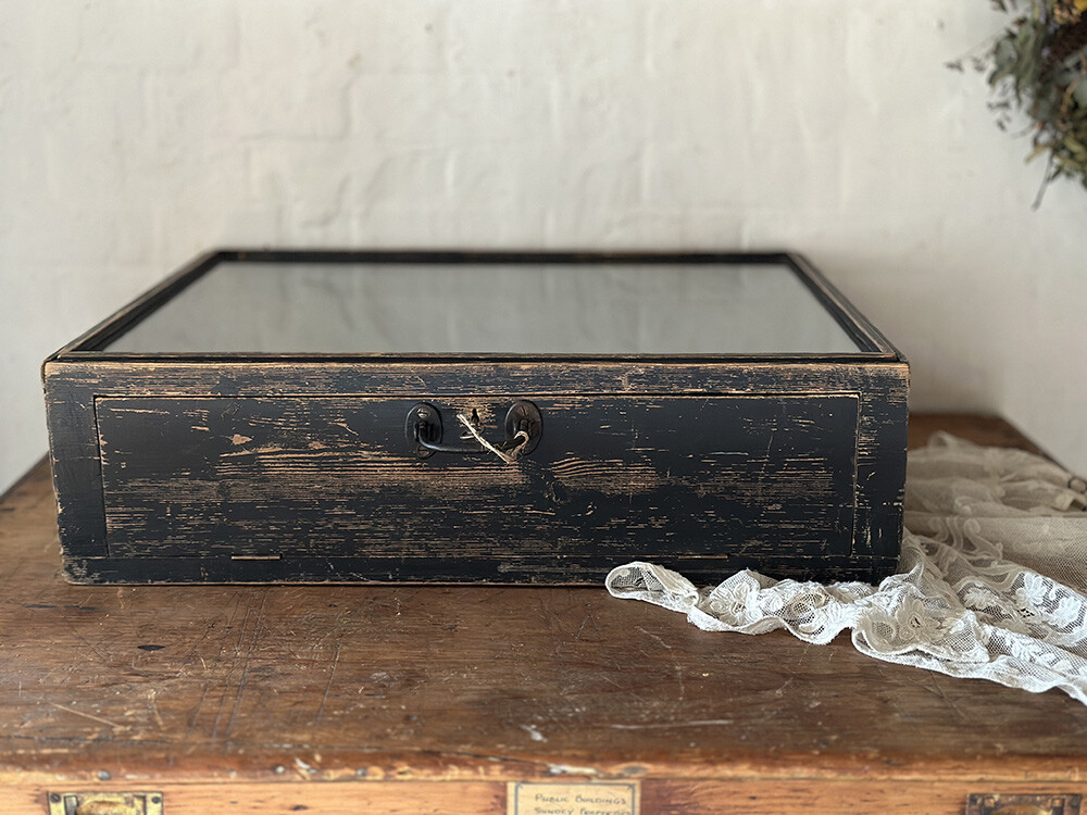 26-085 Old-Vintage Shabby Chic Desktop Display Cabinet - Black – Tetbury, England
