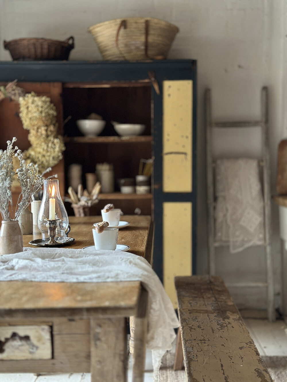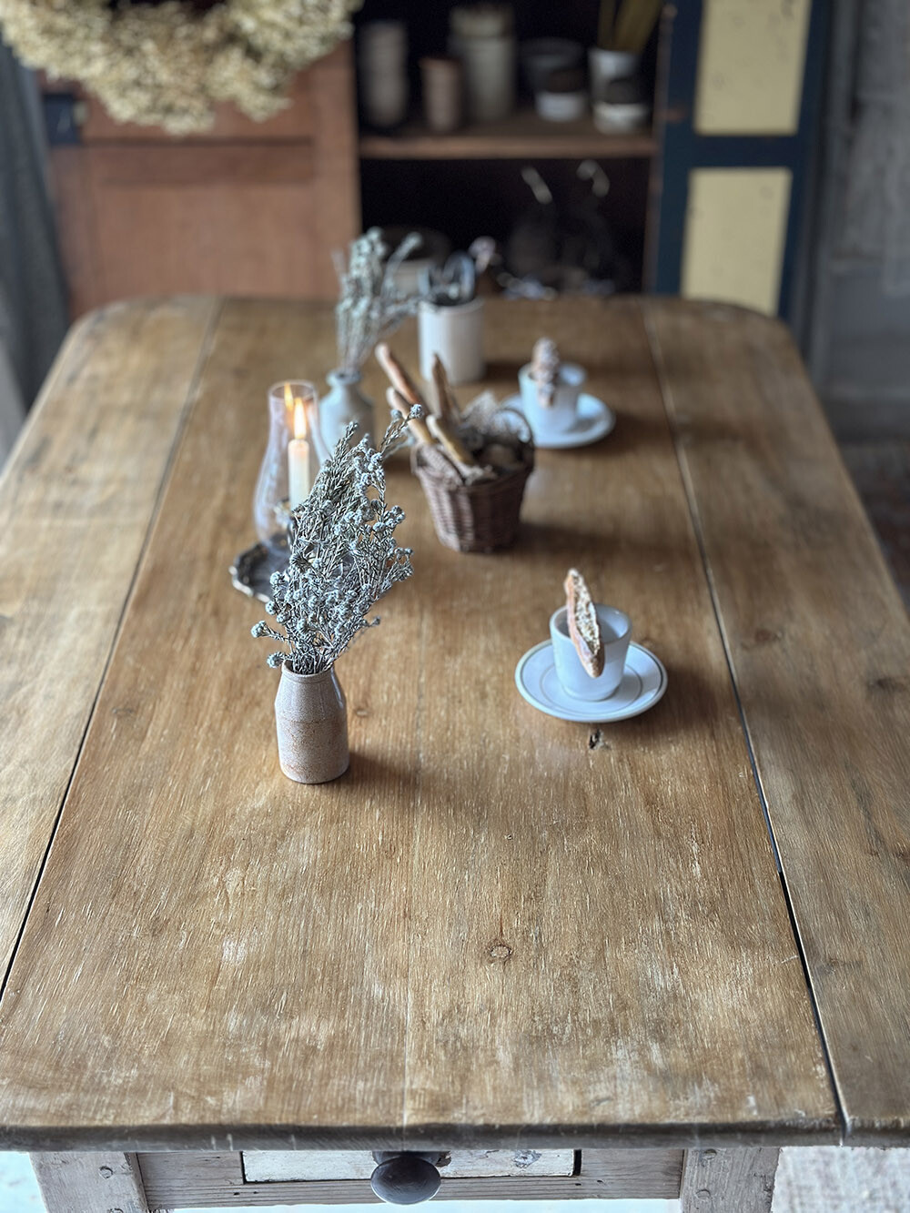 전면에는 하나의 서랍이 달려 있고, 반대편에는 서랍처럼 슬라이딩 방식으로 넣고 뺄 수 있는 브레드 보드가 함께 구성되어 있습니다. 주방과 다이닝 공간을 오가며 사용되던 구조로, 빵이나 간단한 준비물을 올려두는 등 당시 사람들의 생활 방식이 자연스럽게 떠오르는 디테일입니다.