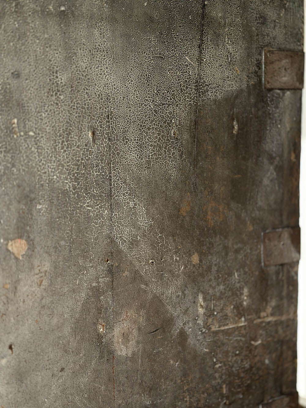표면을 이루고 있는 이 색은 단순히 ‘블랙’이라고 부르기에는 다소 복합적인 층을 가지고 있습니다. 완전히 덮인 페인트가 아니라, 오랜 사용 속에서 부분적으로 닳아가며 그 아래의 목재 컬러가 드러나 있고, 그 위로 다시 시간이 얹히며 형성된 색이죠. 그래서 어떤 부분에서는 차콜처럼 보이고, 또 어떤 부분에서는 브라운의 기운이 올라오며, 빛에 따라 미묘하게 다른 깊이를 보여줍니다.