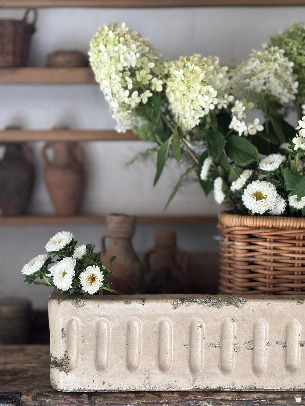 무게가 상당한 만큼 구조적으로 매우 튼튼하며, 실사용을 고려하신다면 하부 프레임이나 받침에 대한 보강 작업은 필수적으로 동반되어야 합니다. 그 과정을 감안하더라도, 현대의 가벼운 세라믹 싱크에서는 느낄 수 없는 물성과 세월의 밀도를 공간 안에 가져올 수 있는 피스입니다. 주방은 물론 플라워 작업대, 가든 룸이나 상업 공간의 워시 존에서도 강한 존재감을 만들어 줄 올드 빈티지 스톤 세라믹 싱크예요.