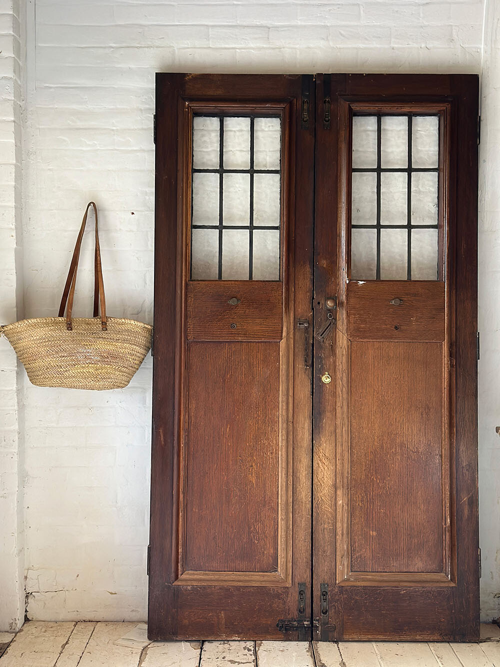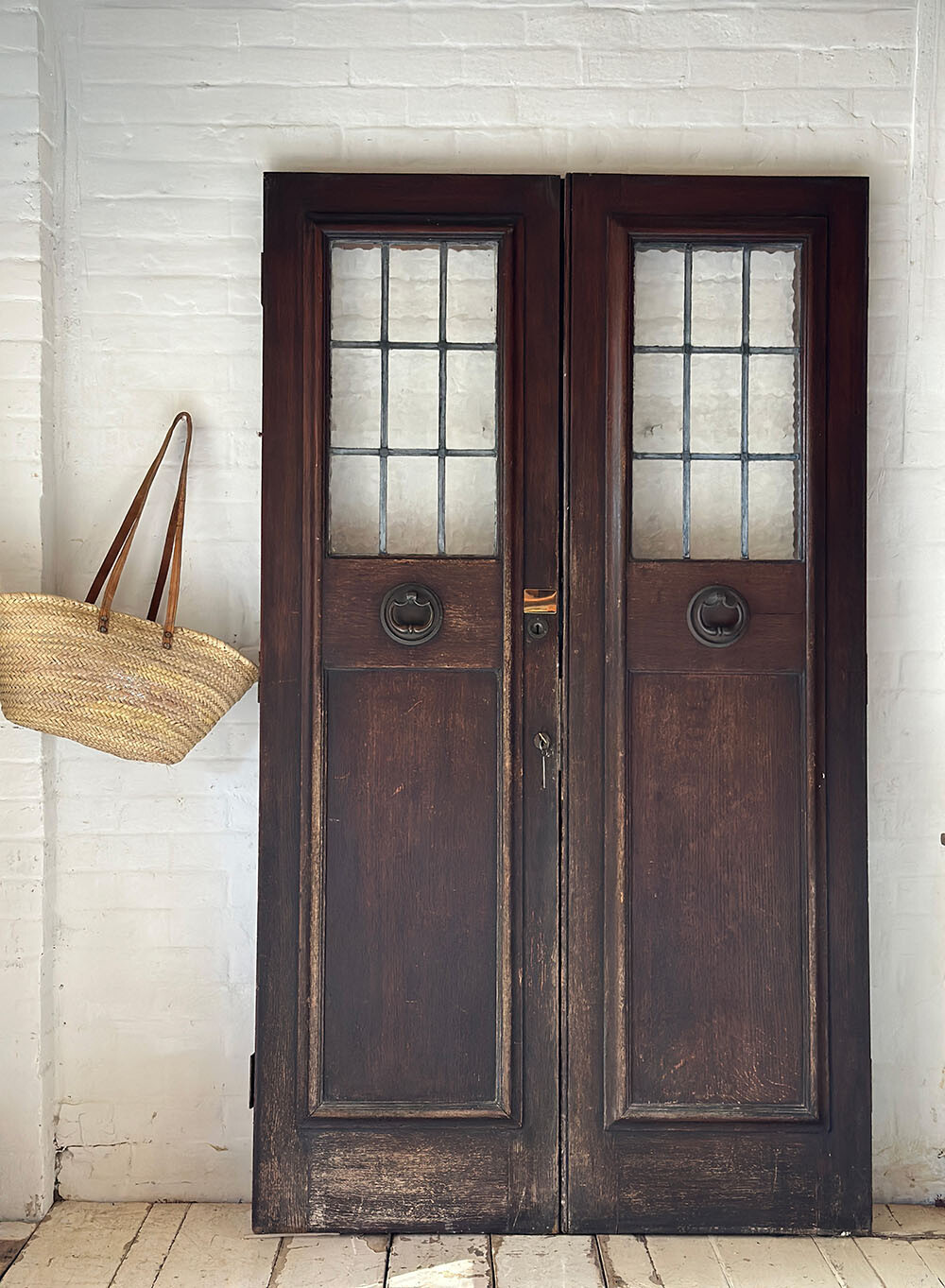 또한 같은 앤틱 도어라 해도 디테일 요소에 따라 가격 차이가 큰 편입니다.가장 결정적인 요소는 오리지널 스테인드 글래스의 유무와 그 상태, 그리고 사이즈나 연대예요.그 외에도 유리창의 존재 여부, 도어의 소재(앤틱 오크, 올드 파인 등), 그리고 열쇠, 도어 노커, 메일박스 등 오리지널 하드웨어의 유무와 희소성이 종합적으로 가격에 영향을 미칩니다.