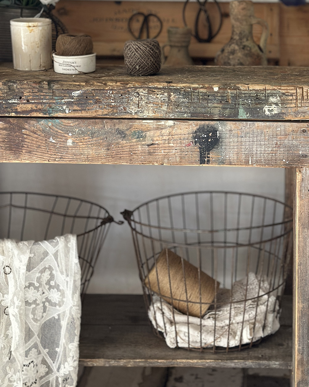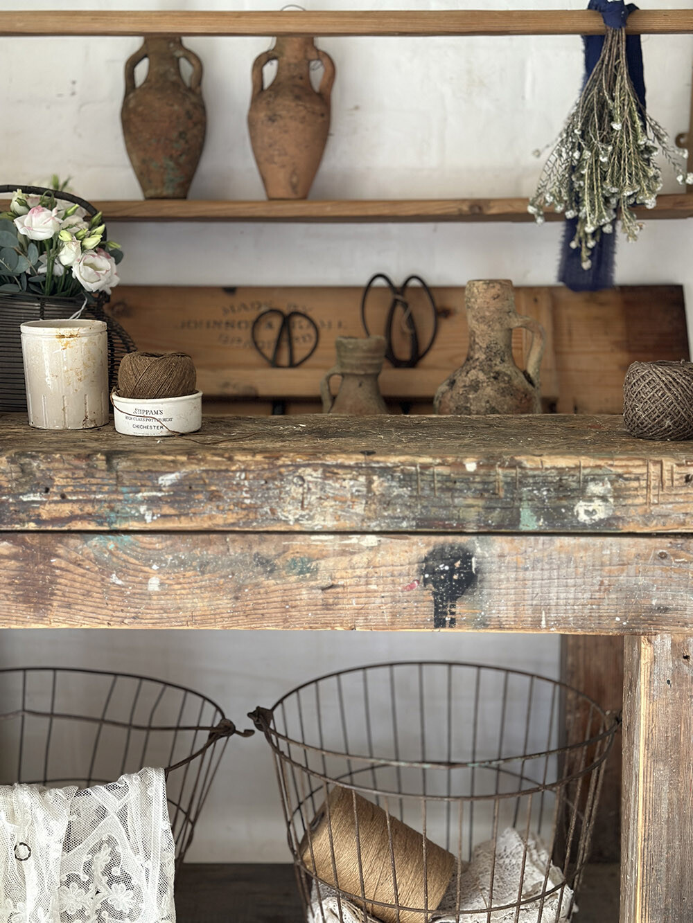 빈티지 와이어 메쉬 바스켓으로, 가는 철선을 엮어 만든 유연한 구조와 위로 갈수록 자연스럽게 벌어지는 실루엣이 특징인 피스입니다. 금속 표면에는 시간의 흐름 속에서 형성된 짙은 산화와 마모가 남아 있어 깊이 있는 파티나를 보여주며, 패브릭이나 실, 작은 오브제들을 담아두었을 때 그 질감과 대비가 더욱 살아납니다. 단순한 수납을 넘어 일상적인 물건들을 자연스럽게 묶어주며 공간의 분위기를 만들어주는 아이템입니다.