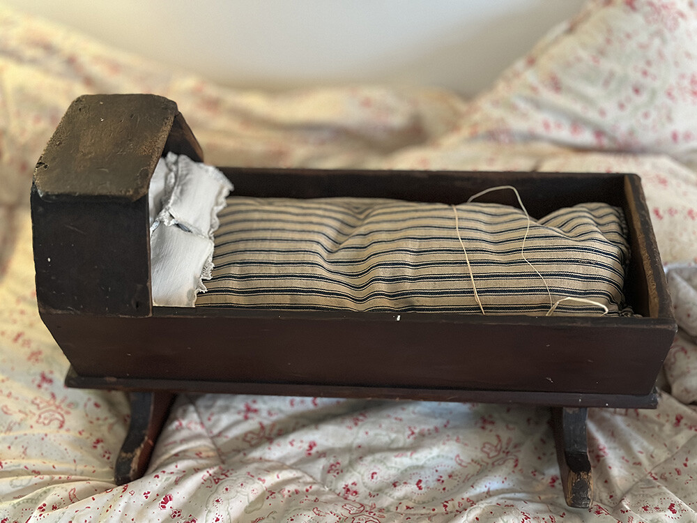 26a-033 Antique oak Teddy cradle with mattress and pillows - Hampshire, England
