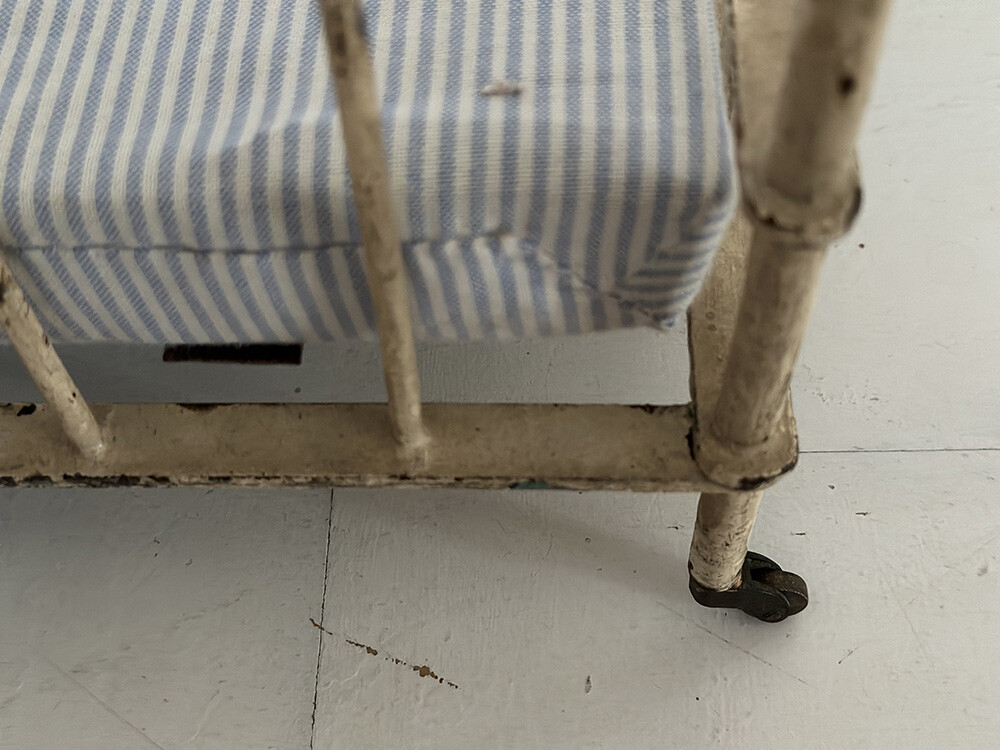 26a-036 Antique French metal baby bed with mattress and canopy - France