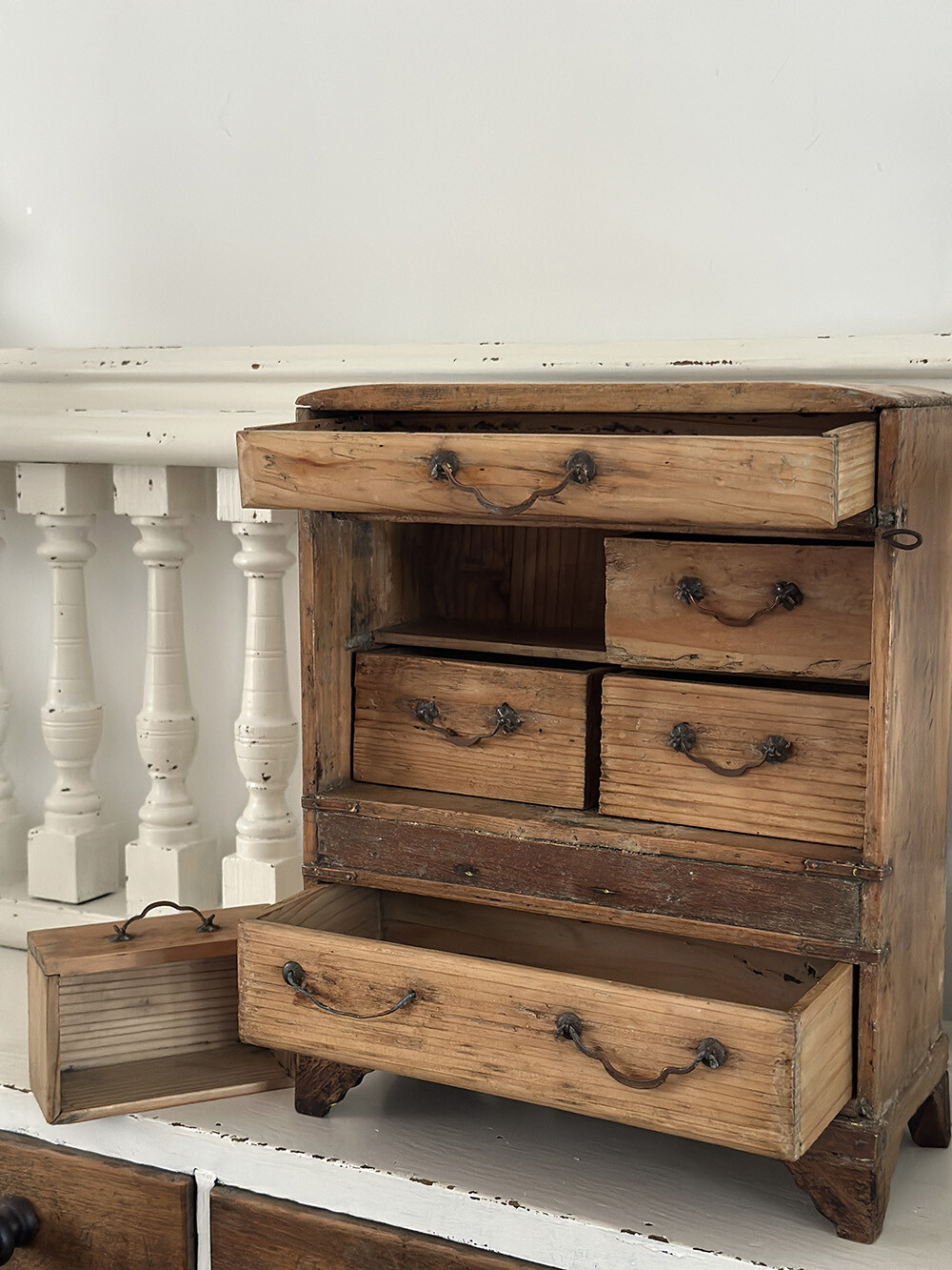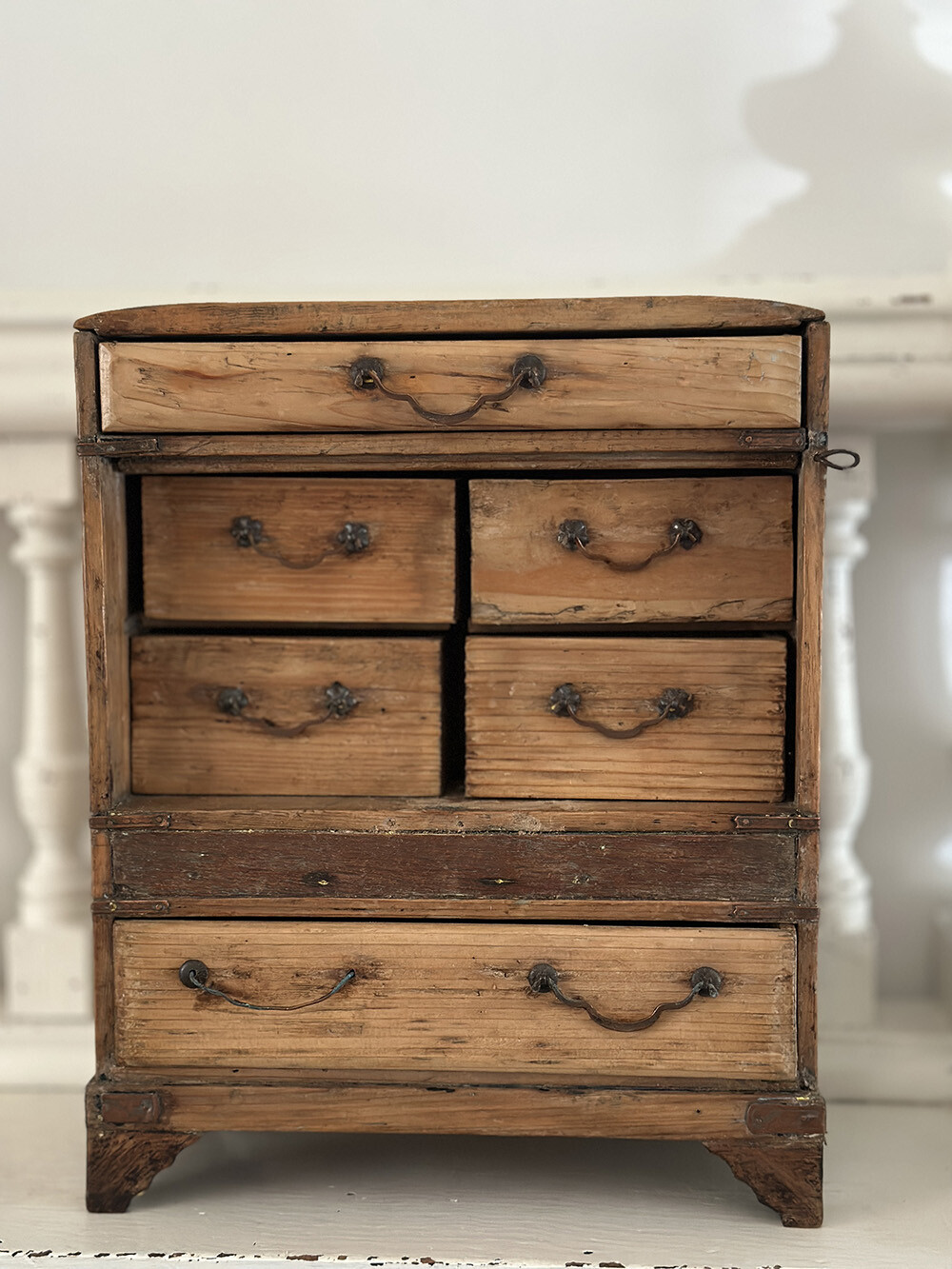 26a-067 Antique pine miniature chest with 6 drawers - England