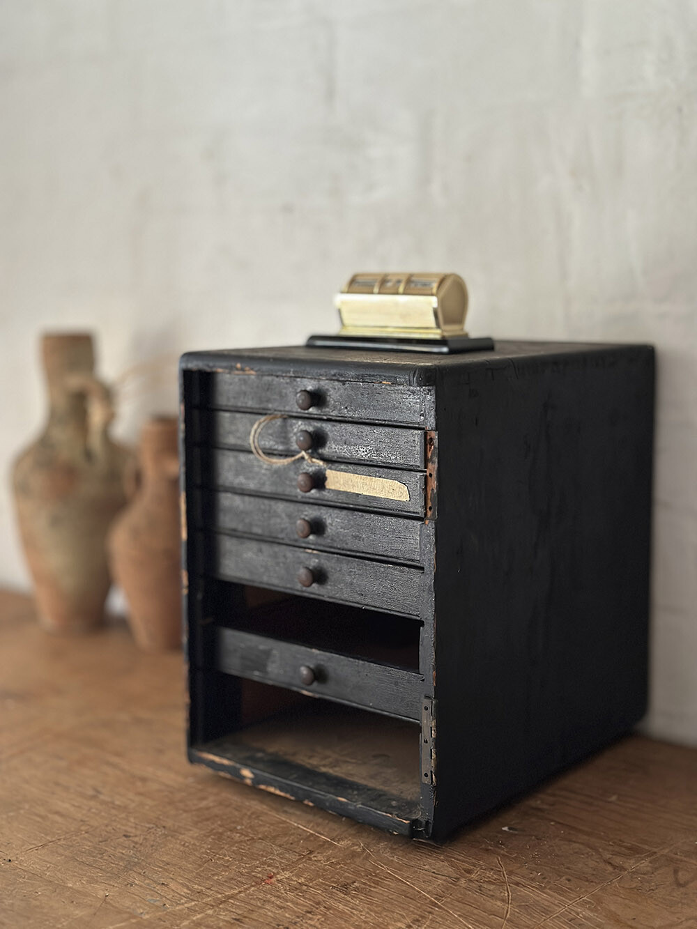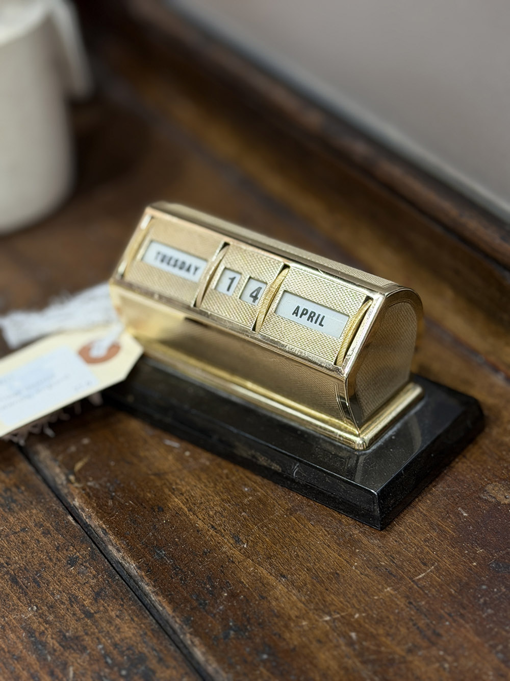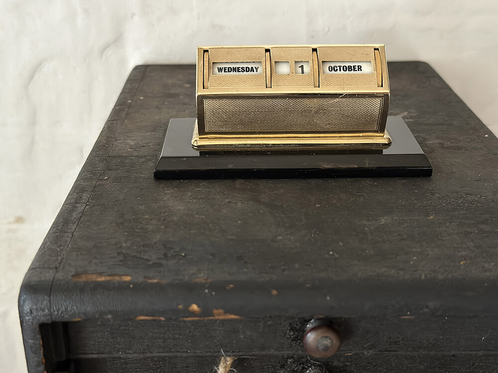 사용을 전제로 만들어진 오브제인 만큼, 휠을 돌리는 손의 감각과 날짜를 맞추는 작은 행위 자체가 하나의 루틴처럼 남아 있는 물건이기도 하죠. 표면에는 미세한 사용 흔적이 자연스럽게 남아 있으며, 이러한 시간의 축적이 더해져 단순한 소품을 넘어 공간에 밀도를 더해주는 빈티지 피스로 자리합니다.