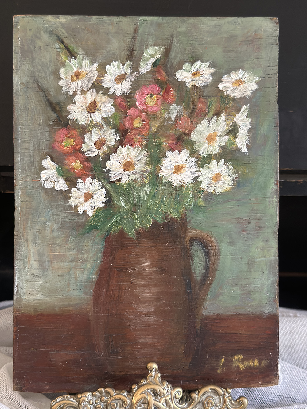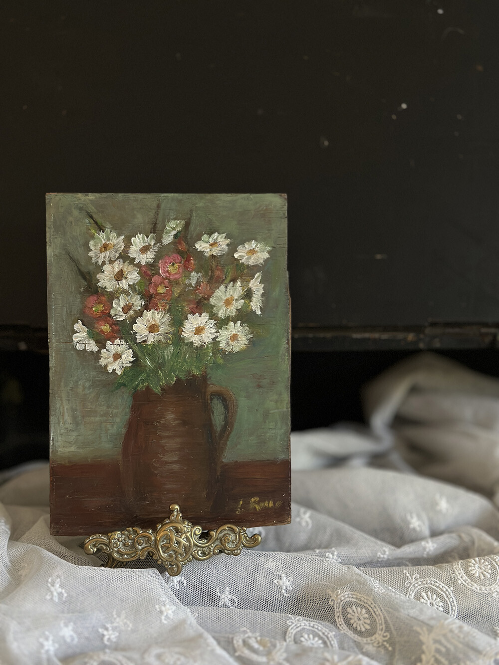 26a-077 Vintage Painting ‘Daisies in a French Jug’