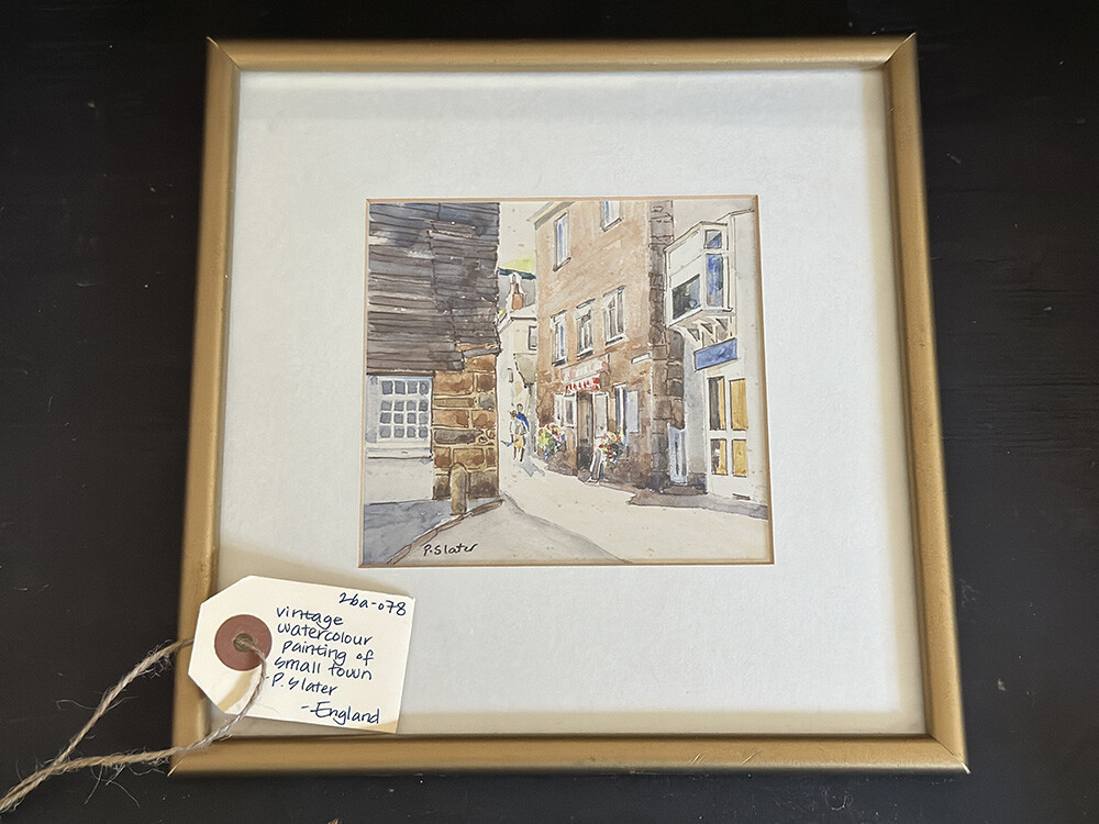 26a-078 Vintage Watercolour Painting of Small Town - P. Slater