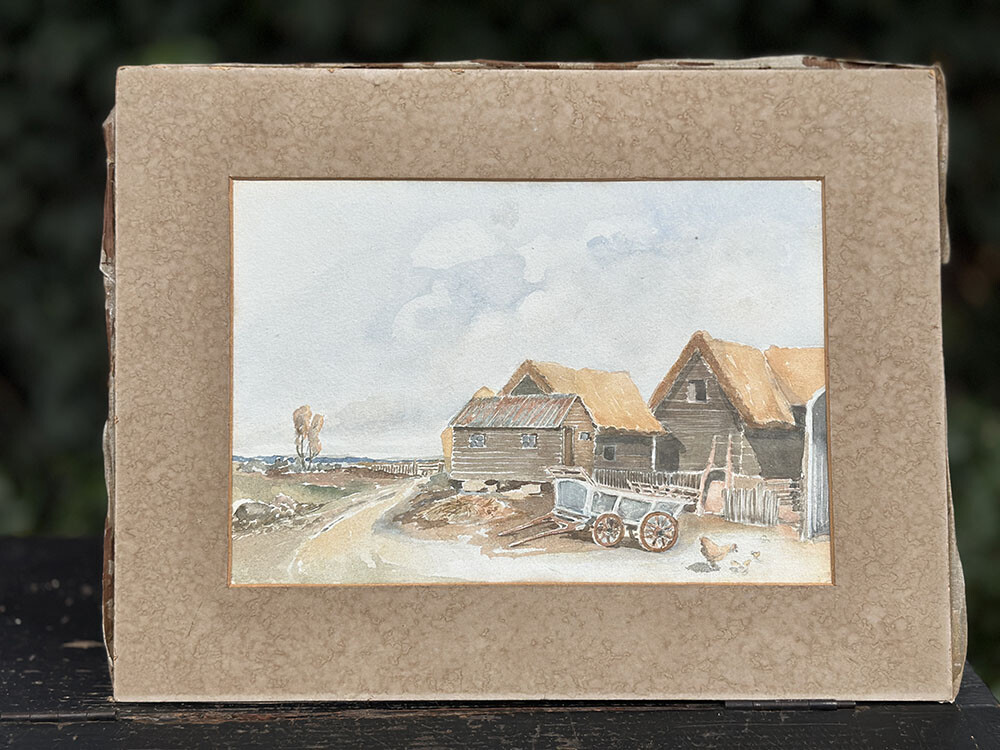 26a-095 Vintage Watercolour Painting of a Farmhouse with a Sea View