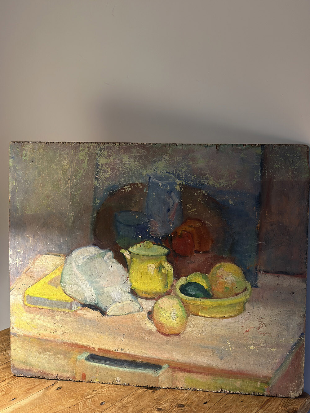 26a-097 빈티지 양면 오일 페인팅 - 'Jugs and Fruit'