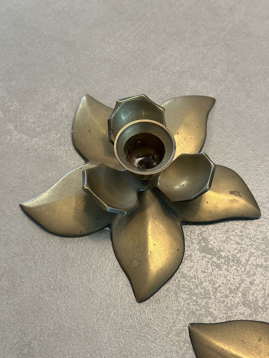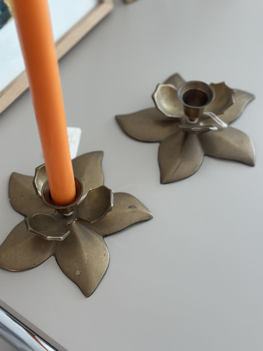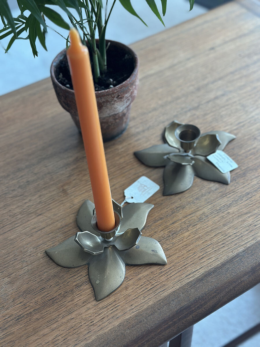 브라스(황동) 소재로 제작된 빈티지 캔들 홀더입니다. 2개가 한 셋트로 구성되어 있습니다.