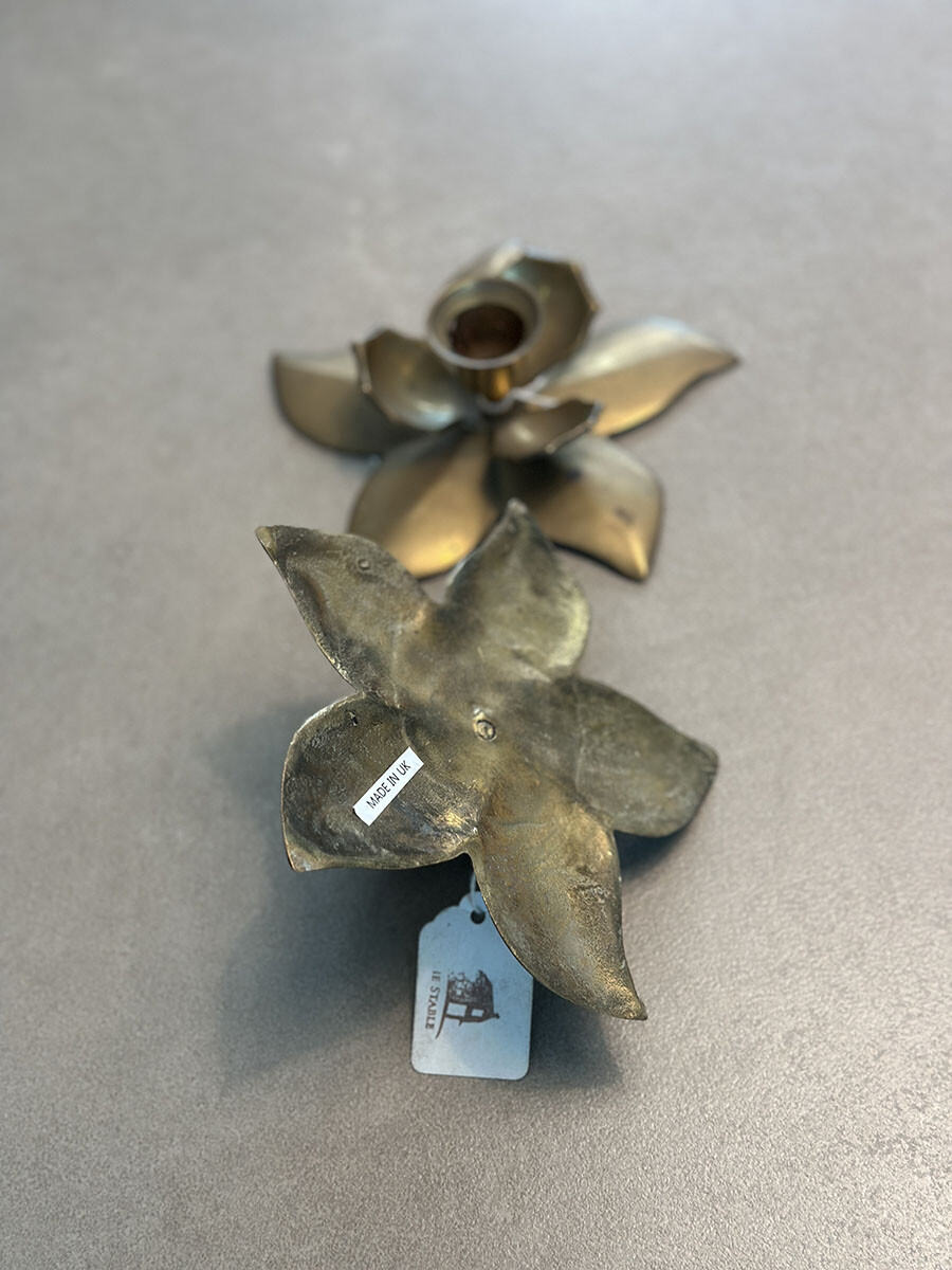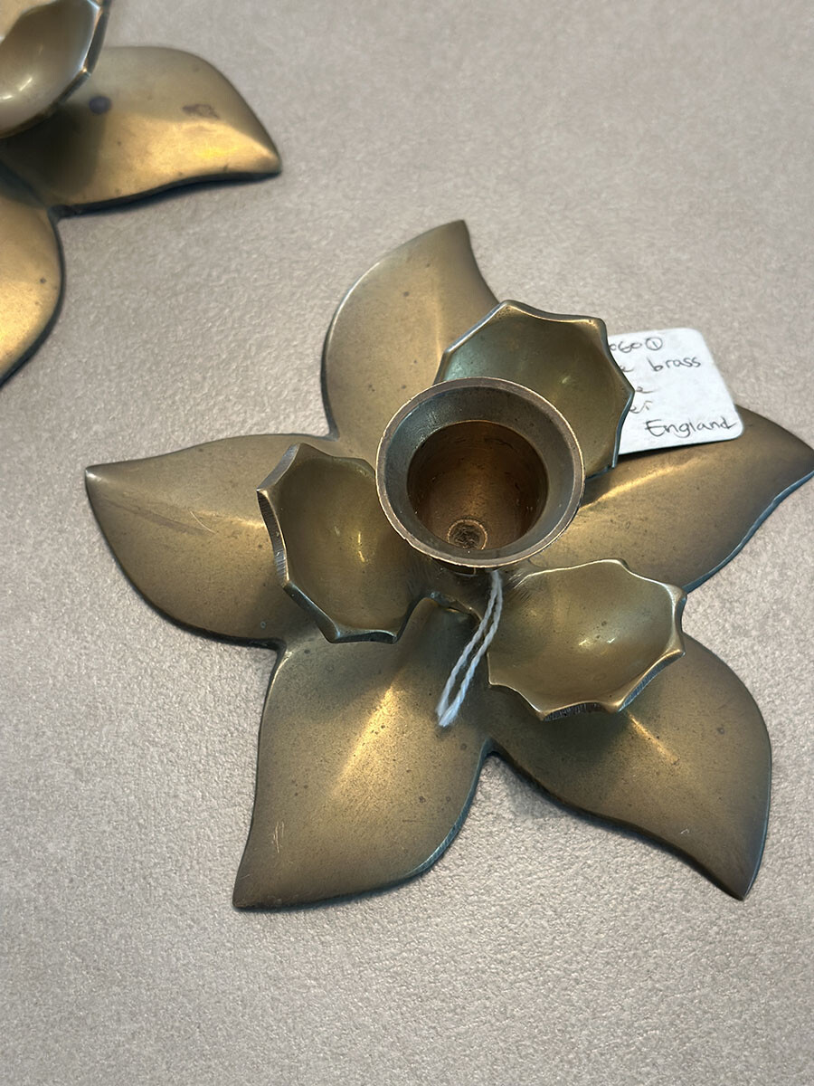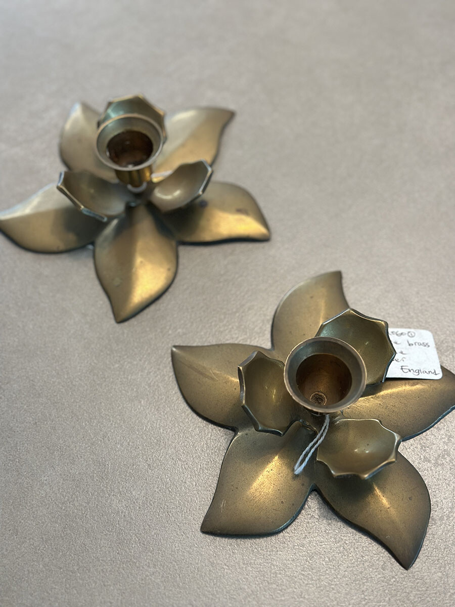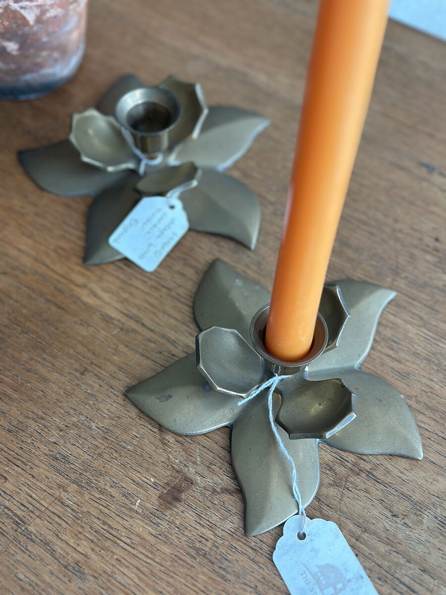 브라스(황동) 소재로 제작된 빈티지 캔들 홀더입니다. 2개가 한 셋트로 구성되어 있습니다.