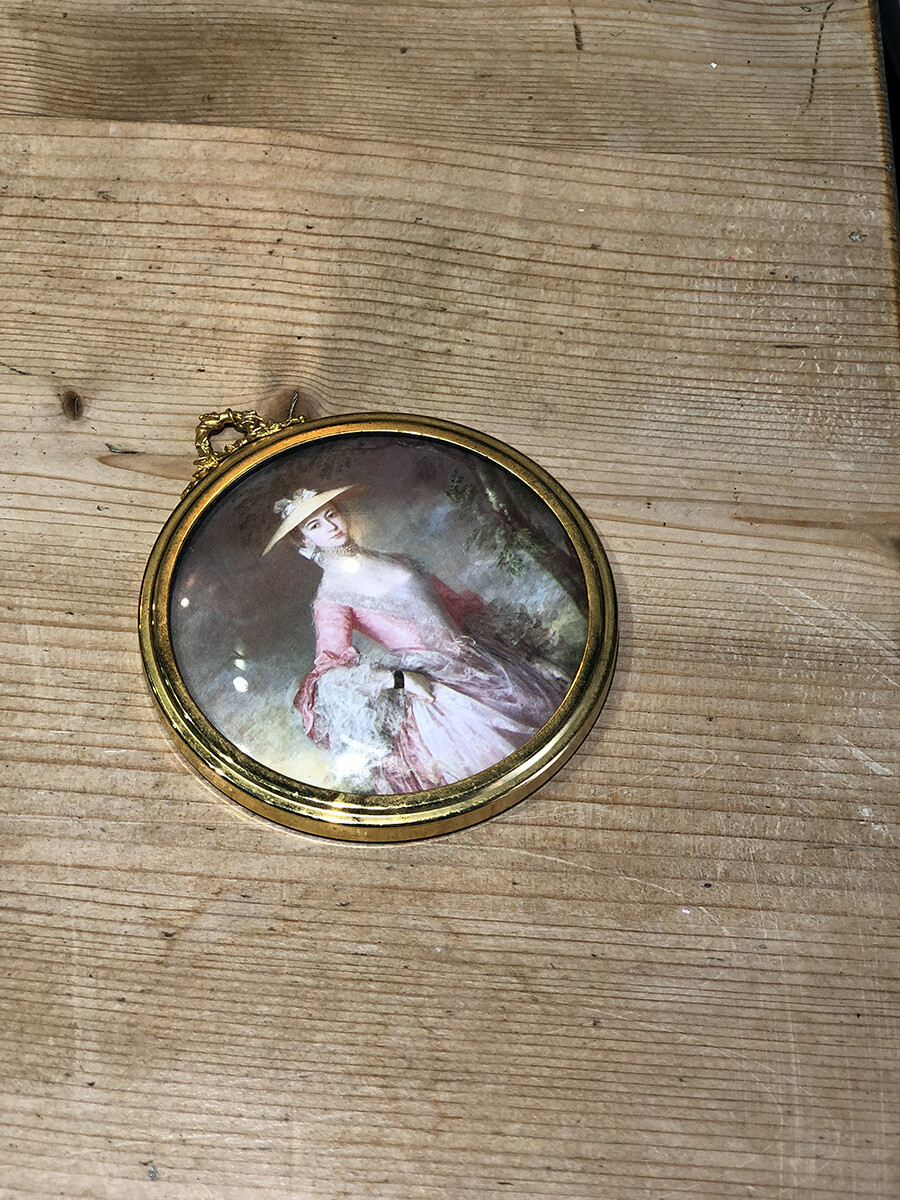 작은 사이즈의 브라스 소재의 액자입니다. 들어있는 그림 그대로 오나먼트로 사용하시거나, 다른 사진 및 그림으로 바꿔 사용하셔도 좋습니다.