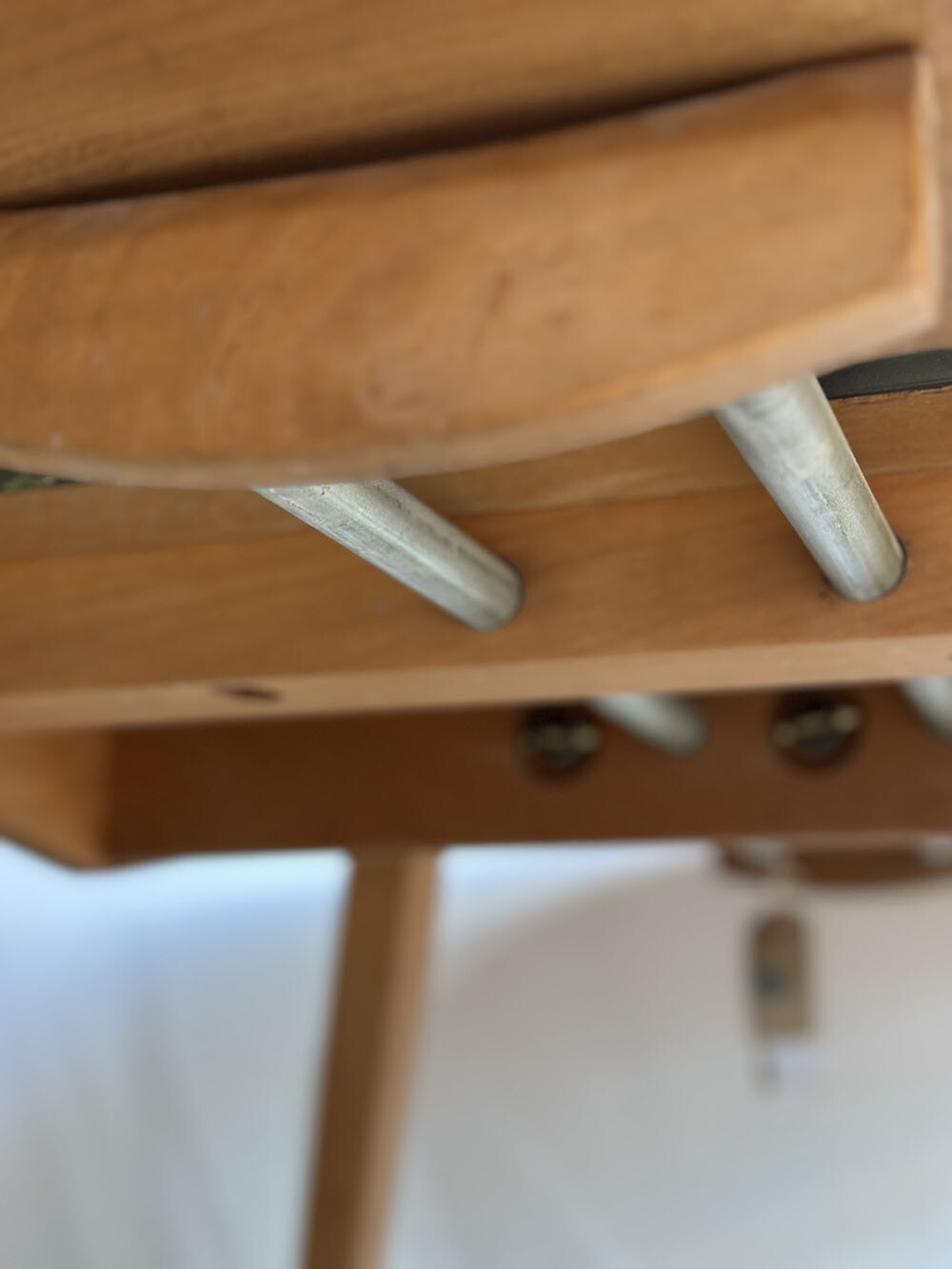 다이닝 테이블로 제작되었으나 본래 용도는 물론, 책상으로 사용하는 것도 좋습니다. 얼콜 특유의 둥글게 마감된 모서리 처리와 세밀한 디테일이 잘 살아 있어, 브랜드의 정체성을 느낄 수 있는 대표작 중 하나입니다. 또한 드랍리프 파츠 지지대에는 알루미늄 파이프를 사용해서 내구도를 영구적인 수준으로 끌어 올린 점도 높이 평가 받고 있습니다.